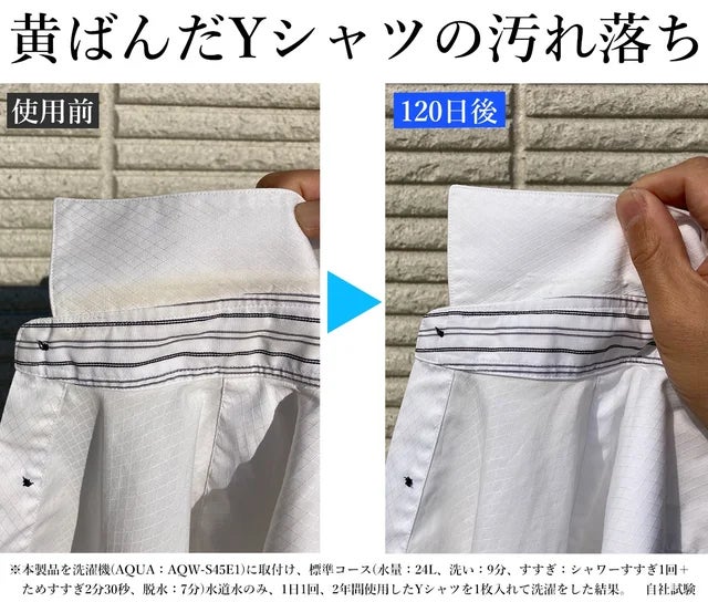 ※自社試験のため、シャツも洗濯槽も汚れやシミの種類・定着具合によって汚れの落ち具合が変わることがあります。洗濯をするたびに徐々に効果を発揮!