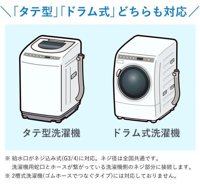 ●ネジ径:G3/4ねじ込み式 国内洗濯機共通(二槽式洗濯機を除く)