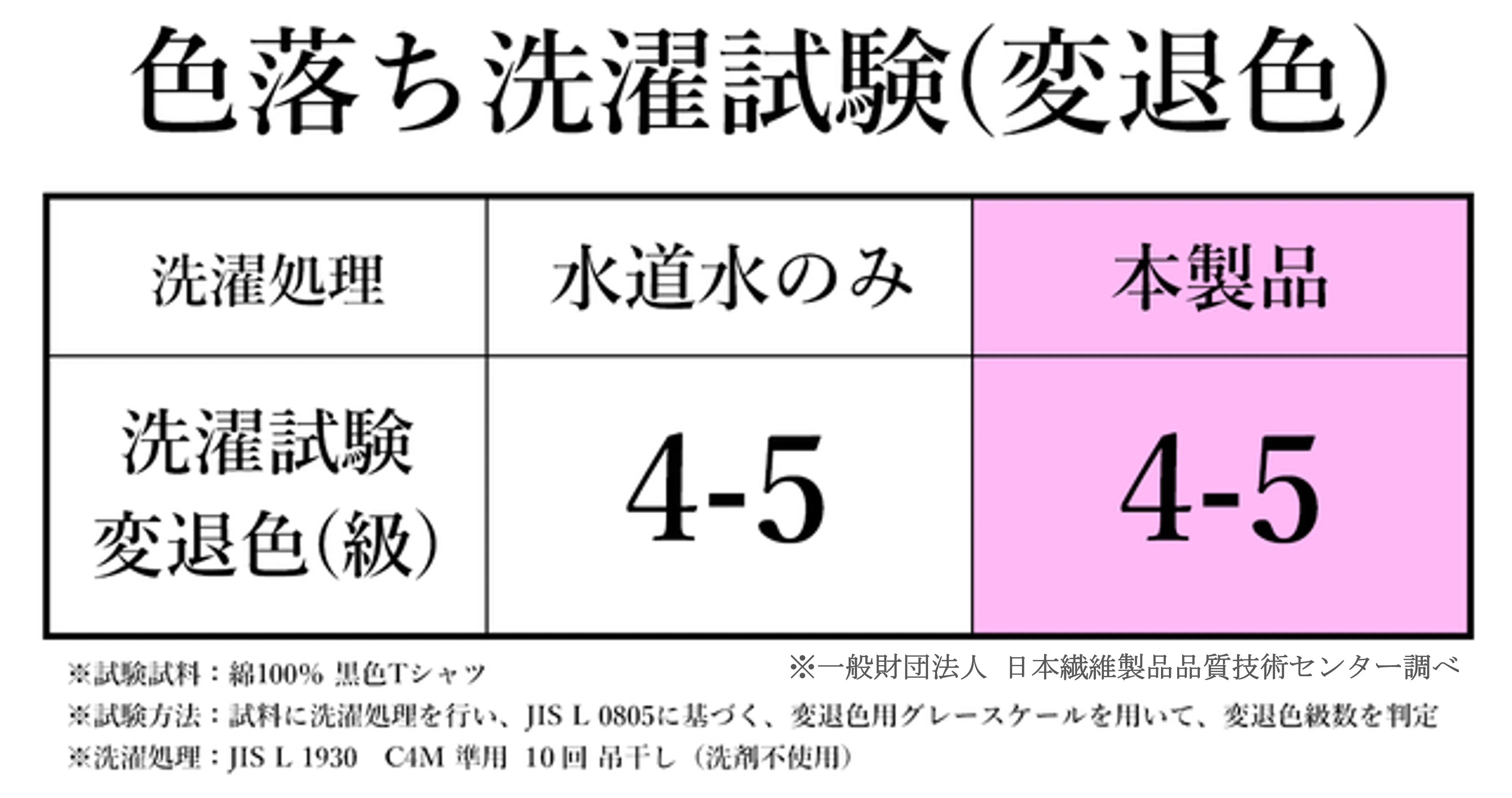まさに一石三鳥です!また、ナノバブルを使用すると「Tシャツの色落ちが気になる」「水道水と比べて色落ちはどうなの?」というご質問をよくいただきます。専門機関で試験したところ、色落ち具合はほとんど変わらない結果となりました。