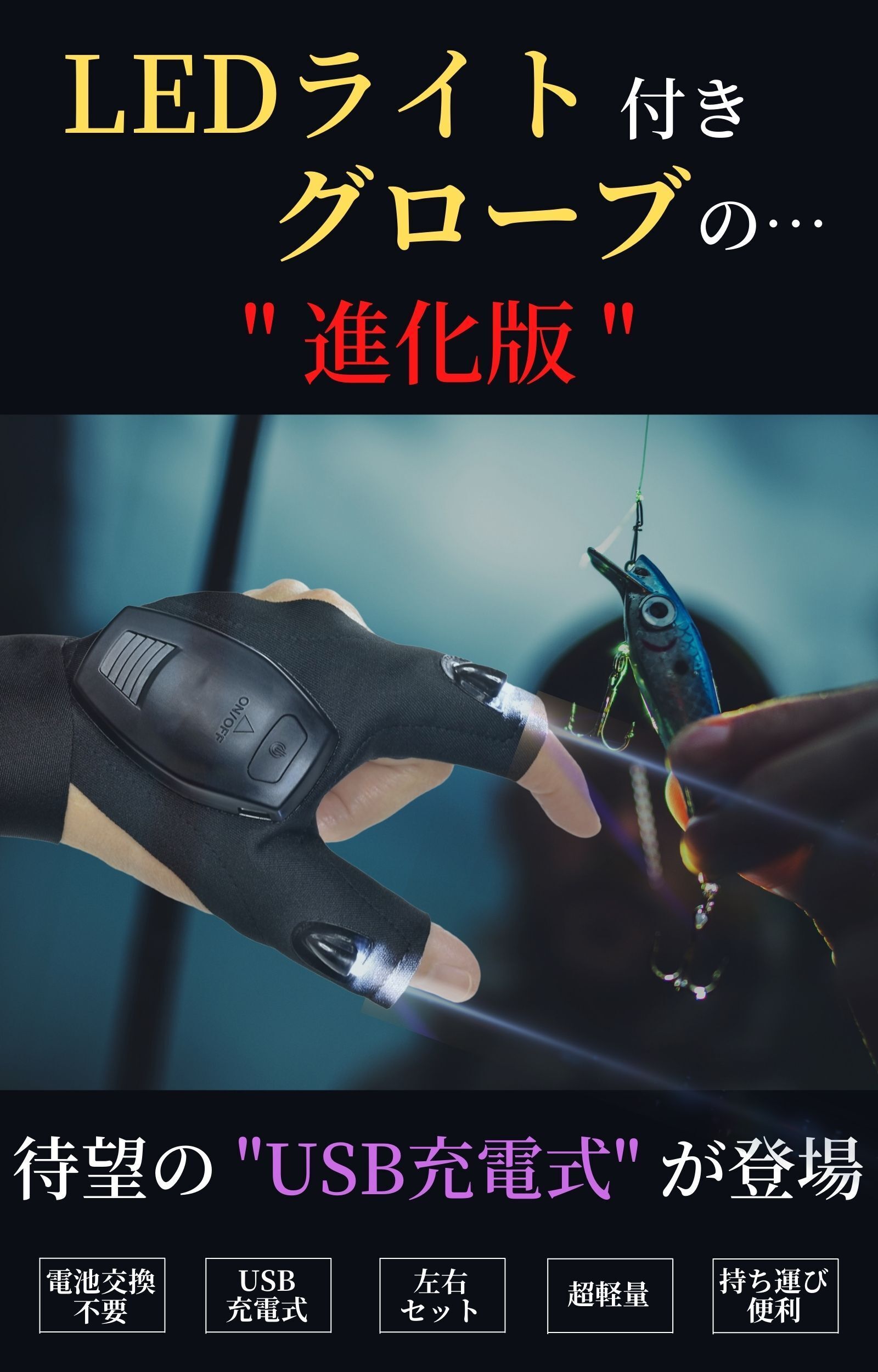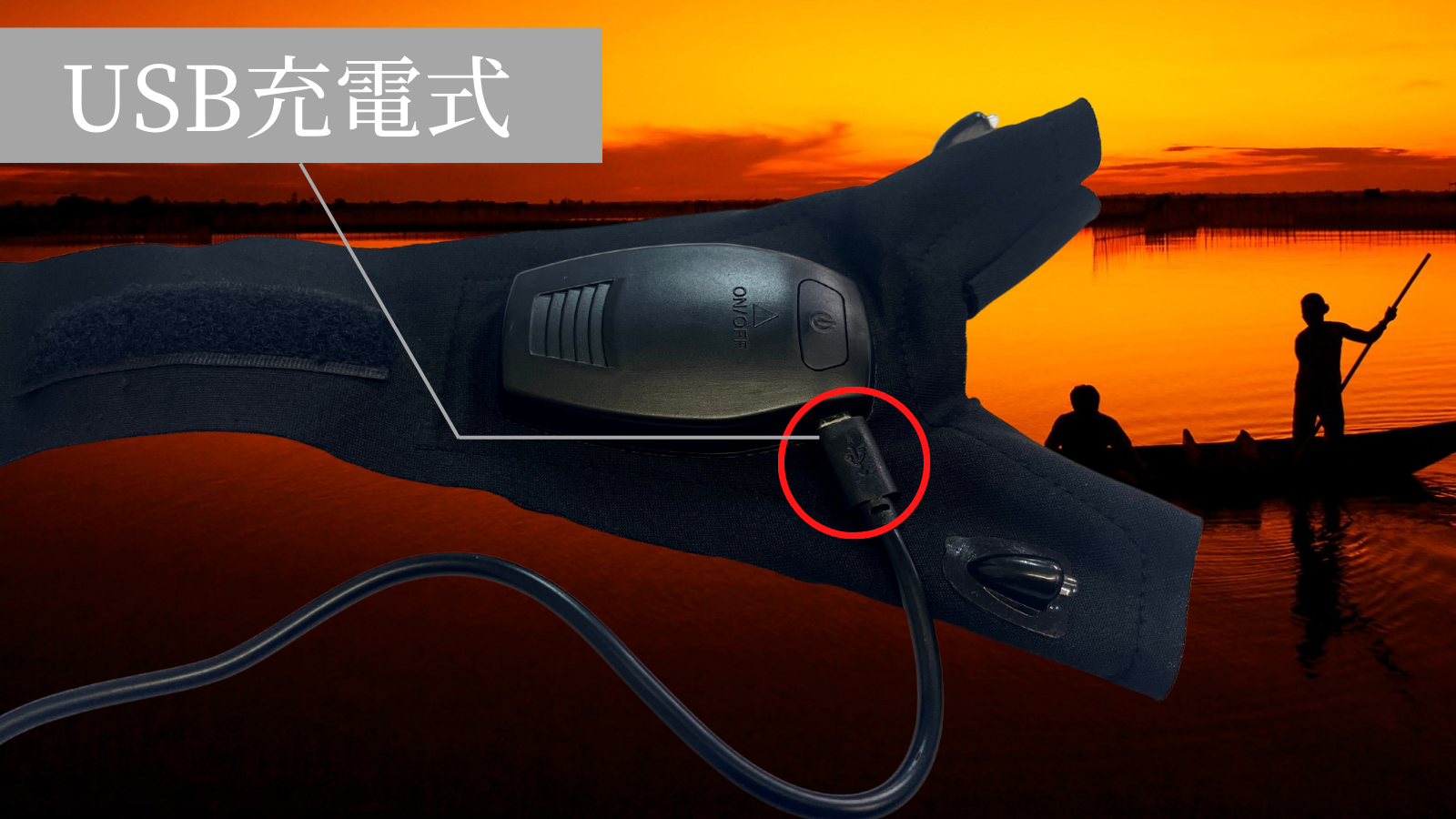 『光るグローブ』は、従来型の電池搭載型から仕様が、USB充電式にバージョンアップされており、軽量化が実現されています。