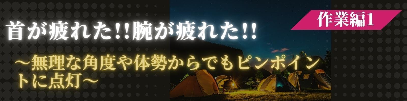 閉所作業で、ピンポイントに光を当てたい時、無理な角度や無理な体勢での長時間作業で『首や腕が痛くなる』といった経験も多くあると思います。