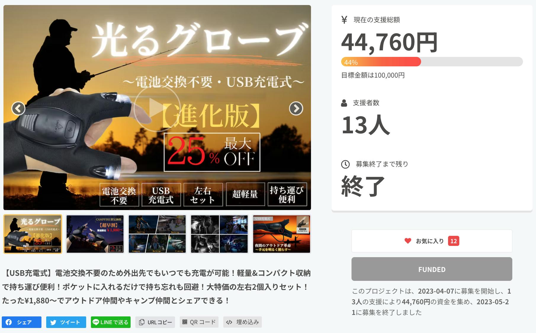 ---------------------------------------------------------------------------------------------------------------------------------------------------------------リターン商品の配送が完了するまでGadget Japanは、Top Com社の『光るグローブ』の日本における独占販売権を有する正規代理店です。