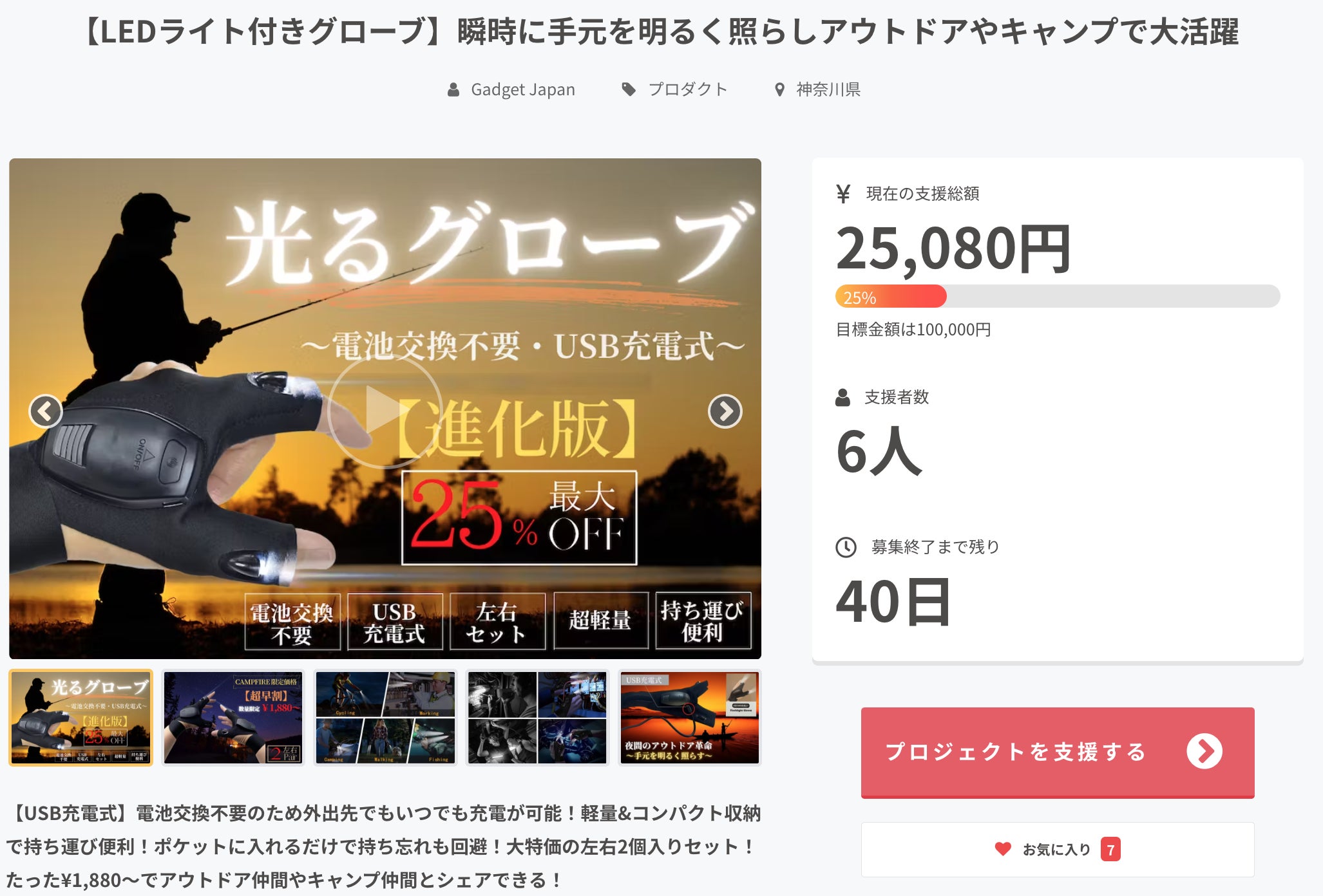お世話になっております、Gadget Japanです♪現在公開中の『光るグローブ』ですが、多くの支援者様から大変心温まるご支援を頂き、とても嬉しく思っております。本日は、現在購入をご検討中のお客様並びに、既に購入頂きましたお客様に向けて、少しでも期待違いや、ご認識に関する差異が埋められるようにと思い、ご質問とメーカー回答をまとめて、共有させて頂けたらと思います。是非、サポートや仕様詳細のご参考にして頂けたら幸いですm(_ _)m【Q&A】Q.バッテリー容量は?A.150mAhになります。Q.バッテリーの寿命は?A.約1000回の充放電が可能です。Q.満充電までの充電時間は?A.30分から1時間です。Q.満充電状態で、連続何時間使用可能か?A.6時間から8時間使用できます。Q.充電器は市販の物で対応可能か?、制限はないのか?A.はい、5Vアダプターで充電できます。Q.購入後の保証期間は?A.1年になります。Q.初期不良、保証期間内に不具合発生の場合は、無償交換してくれるのか?A.はい、人為的な破損でない限り、無償で交換いたします。Q.ライトやバッテリーは防塵・防滴構造になっていますか?A.グローブライトはIP44の防水性能を有していますが、防水性はありません。数滴の水しぶきには耐えることができますが、水に浸けたり、水で流したりすることはできません。Q.充電部分は水に濡れても大丈夫な構造になっていますか?A.いいえ、充電口は水に濡らさない方が好ましいです。以上になります。また、追加でご質問を頂き、メーカー回答が届いた際は、随時皆様に共有させて頂けたらと考えておりますので、引き続き公開終了まで、何卒応援の程、宜しくお願い申し上げますm(_ _)m