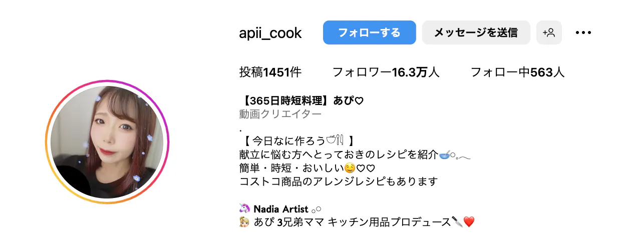 私はInstagramをメインに、献立に悩む方へ「簡単・時短・おいしい♡」とっておきのレシピを紹介しています。