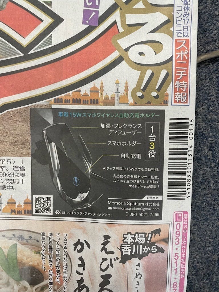 当社の製品が今日のスポーツニッポン新聞社が発行したスポニチ特報で広告が九州エリアで公開され、多くの方々にご覧いただけました。この広告によって、当社の製品が更に多くのお客様に知っていただける機会となりましたことを大変嬉しく思います。