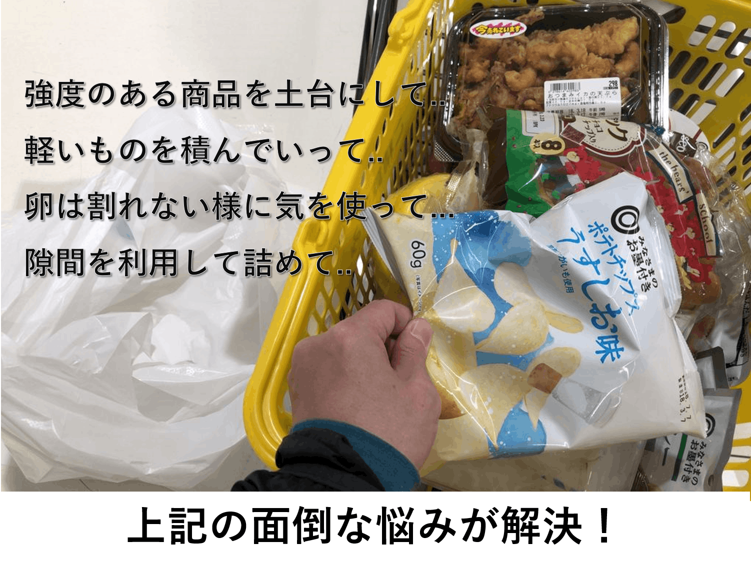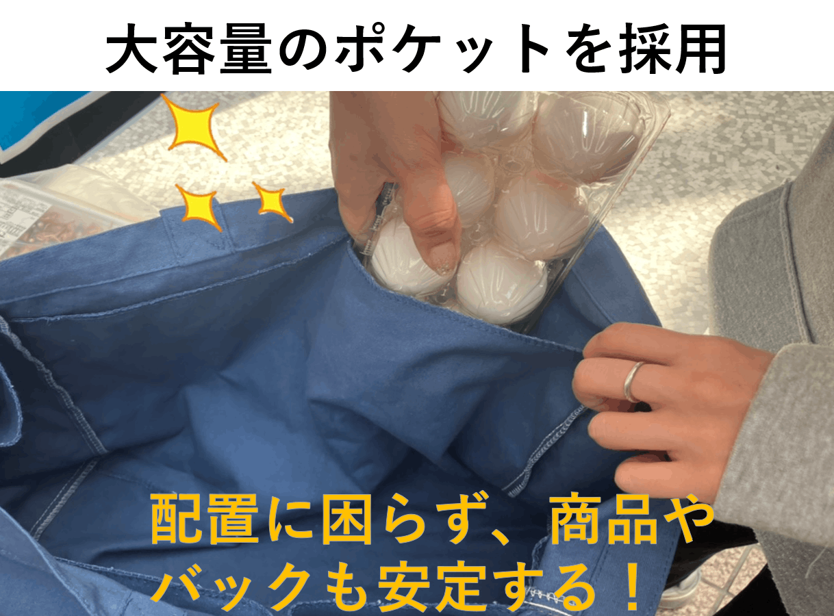 今まで感じていたレジ前でのストレスやエコバッグで困った経験を解決するために開発をスタート。