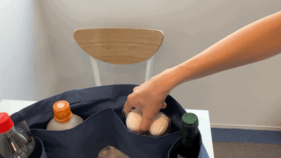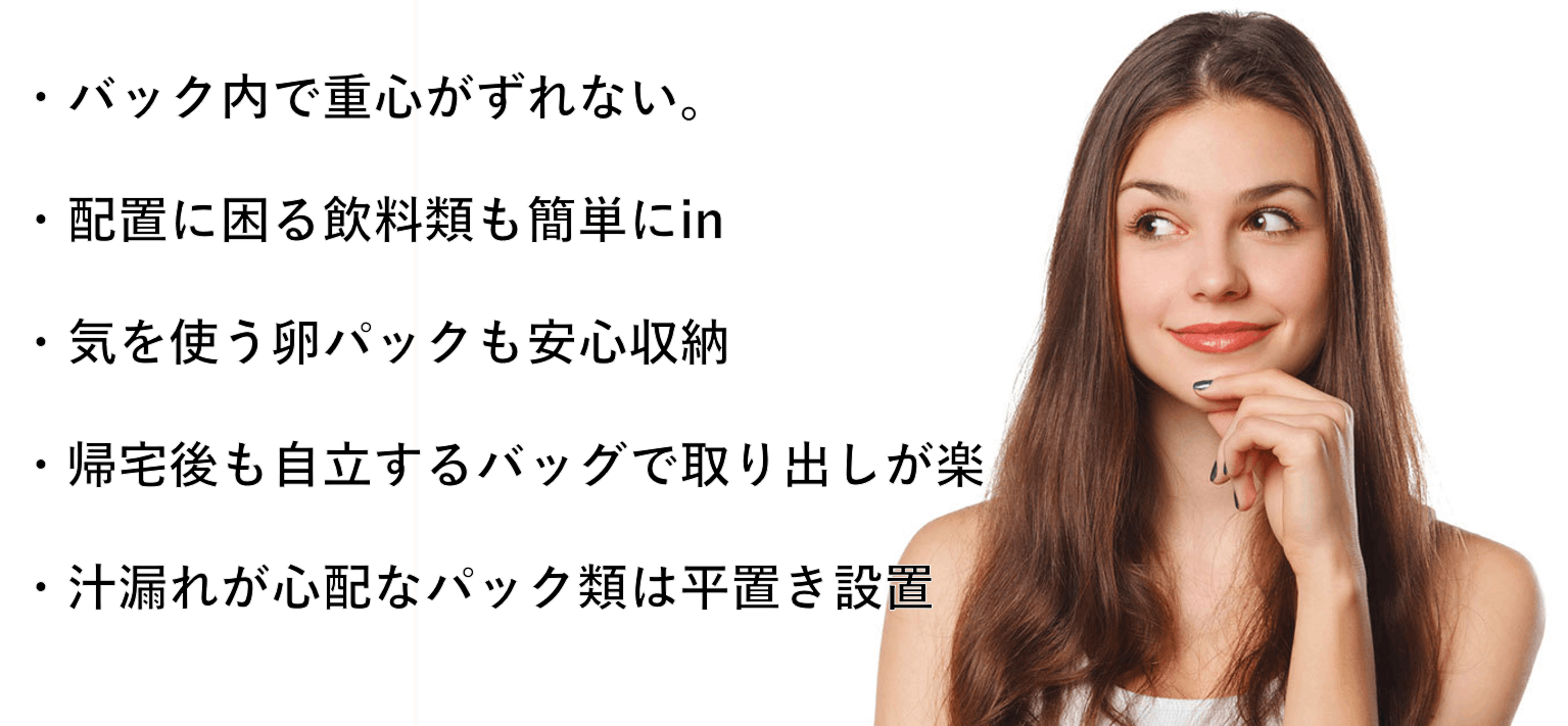 重心がずれずに安定しているので、帰宅後に取り出す際もバッグが倒れることなくスムーズに取り出せます。