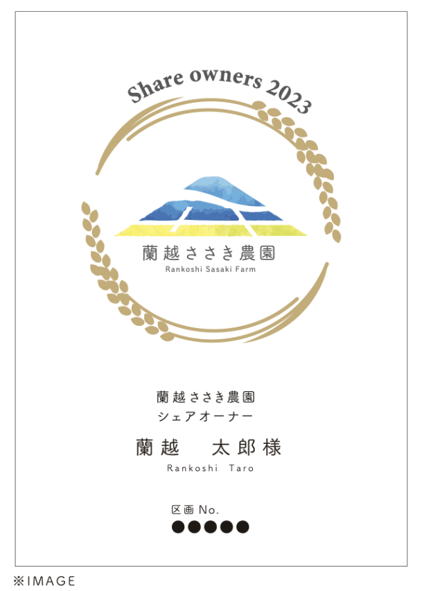 オーナーになっていただいた方には、契約後1ヶ月以内にオリジナルの「蘭越ささき農園シェアオーナーズ権利証」をお送りさせていただきます。