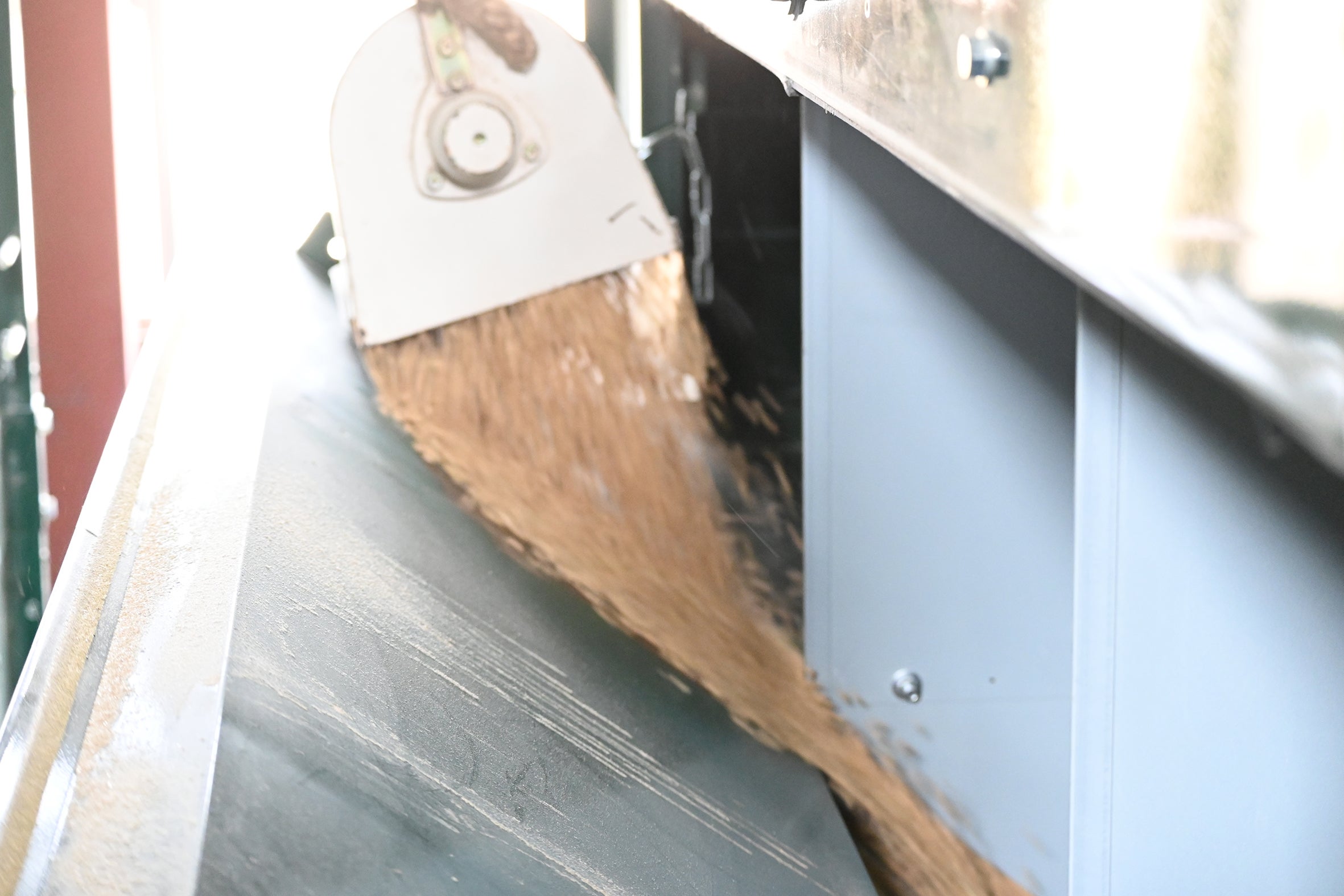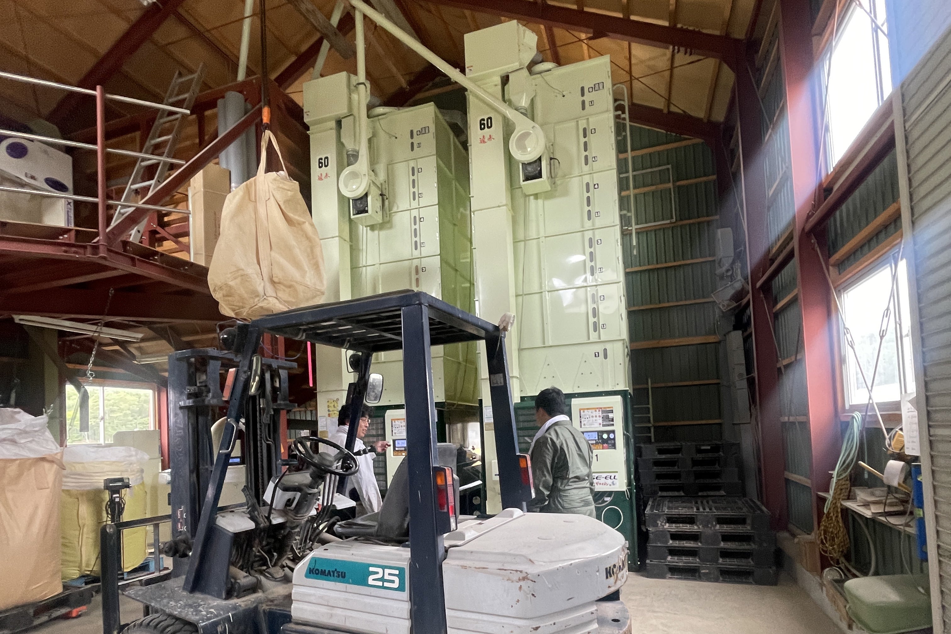 納屋の中にある大きな乾燥機には収穫したお米がすごい勢いでどんどん運び込まれます!