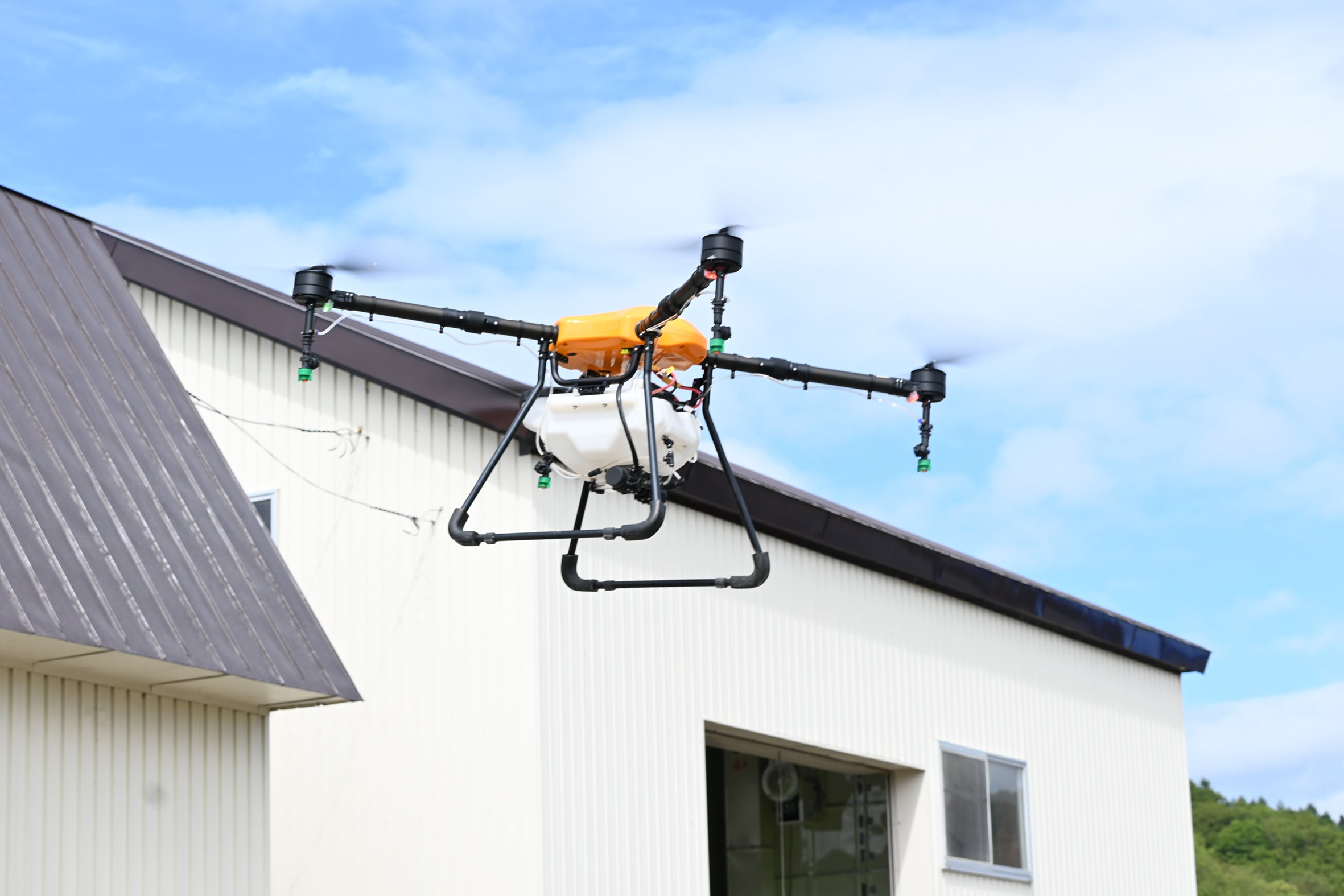 防除で活躍するドローンは、全長150cm近くあり、飛んでる時も大迫力。