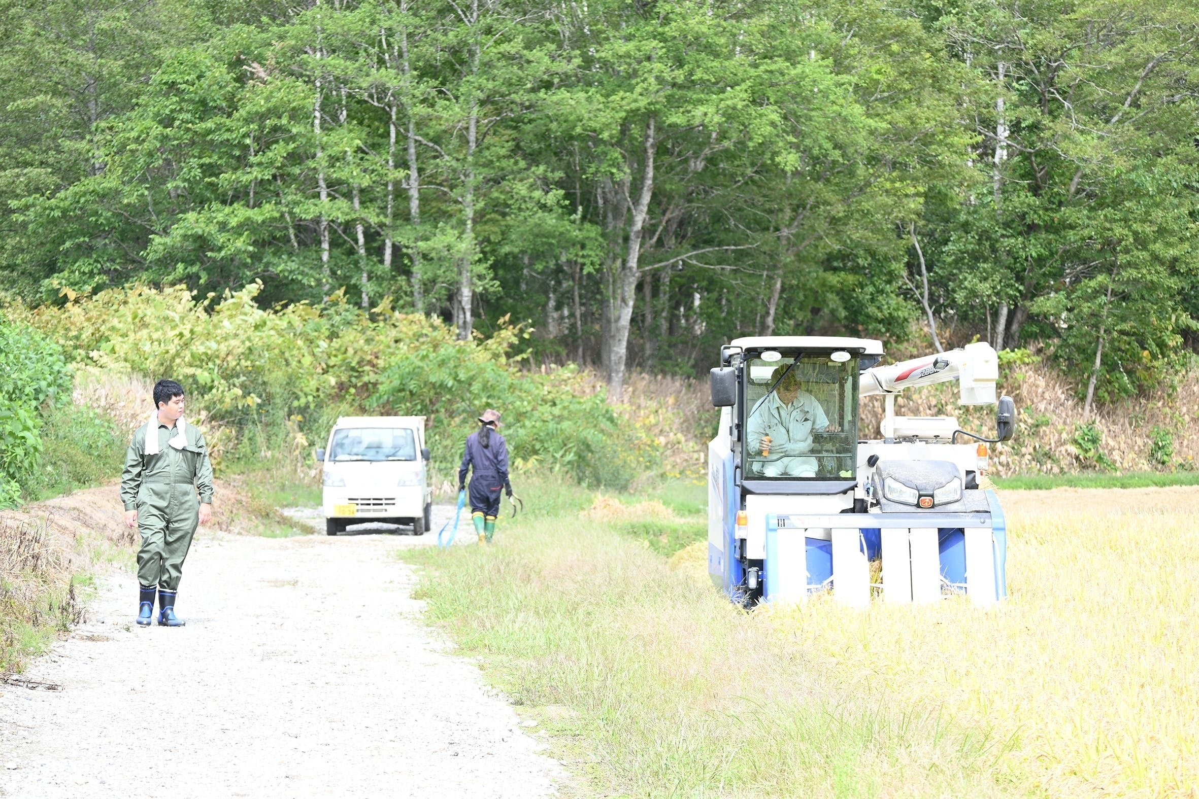 一定のスピードを保ちながら、稲の高さに合わせて、稲を刈る機械部分を上下したり、軌道がずれないように細かに左右に移動しながらと、繊細な操作が必要なことに驚きました!