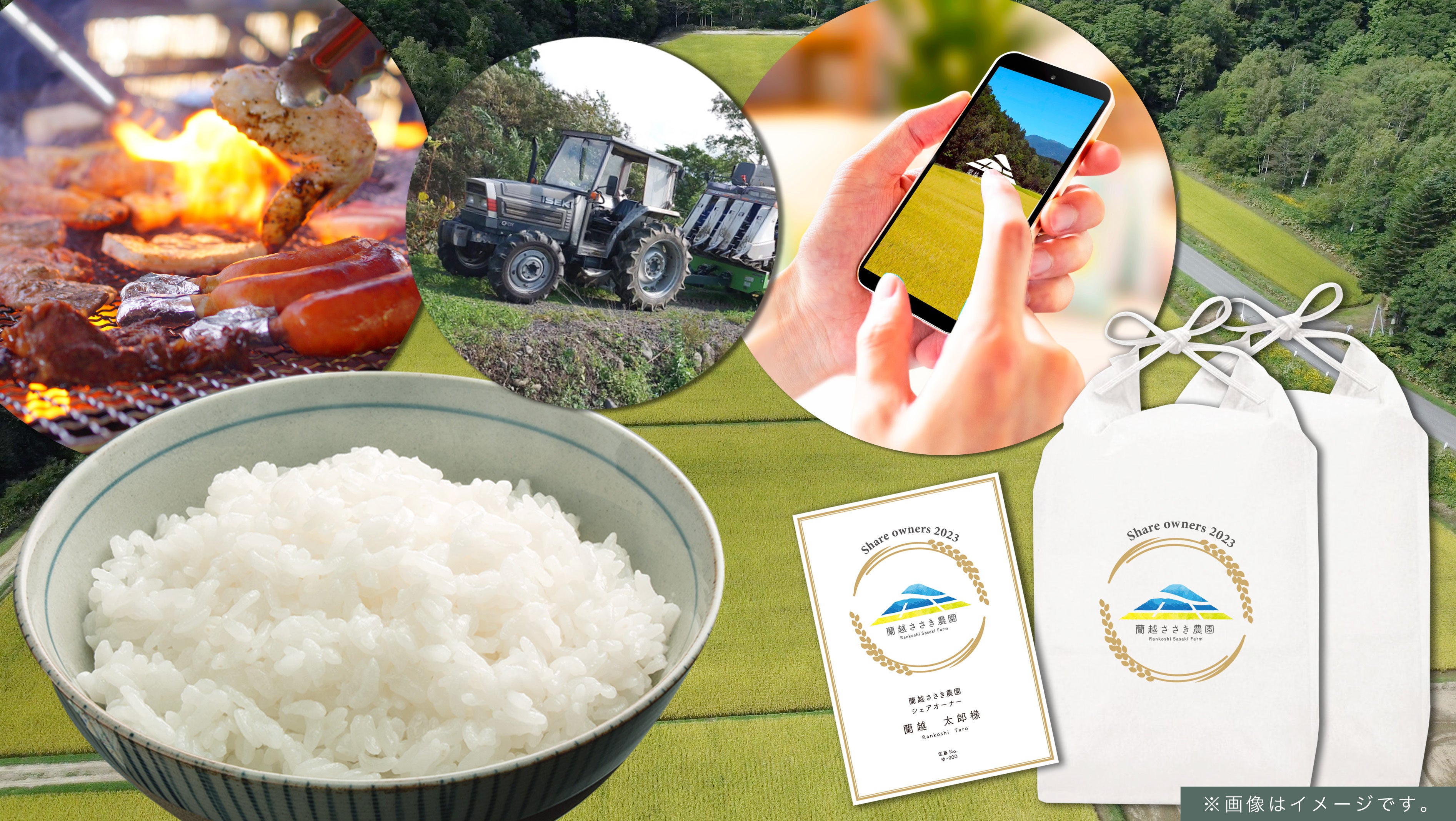 - お越しいただいたシェアオーナー様には、蘭越・田んぼの風景を堪能していただきながら、新米の炊き立てのお米・BBQをお楽しみいただけます。場合によっては、開催場所が屋内へ変更となる場合がございます。予めご了承ください。