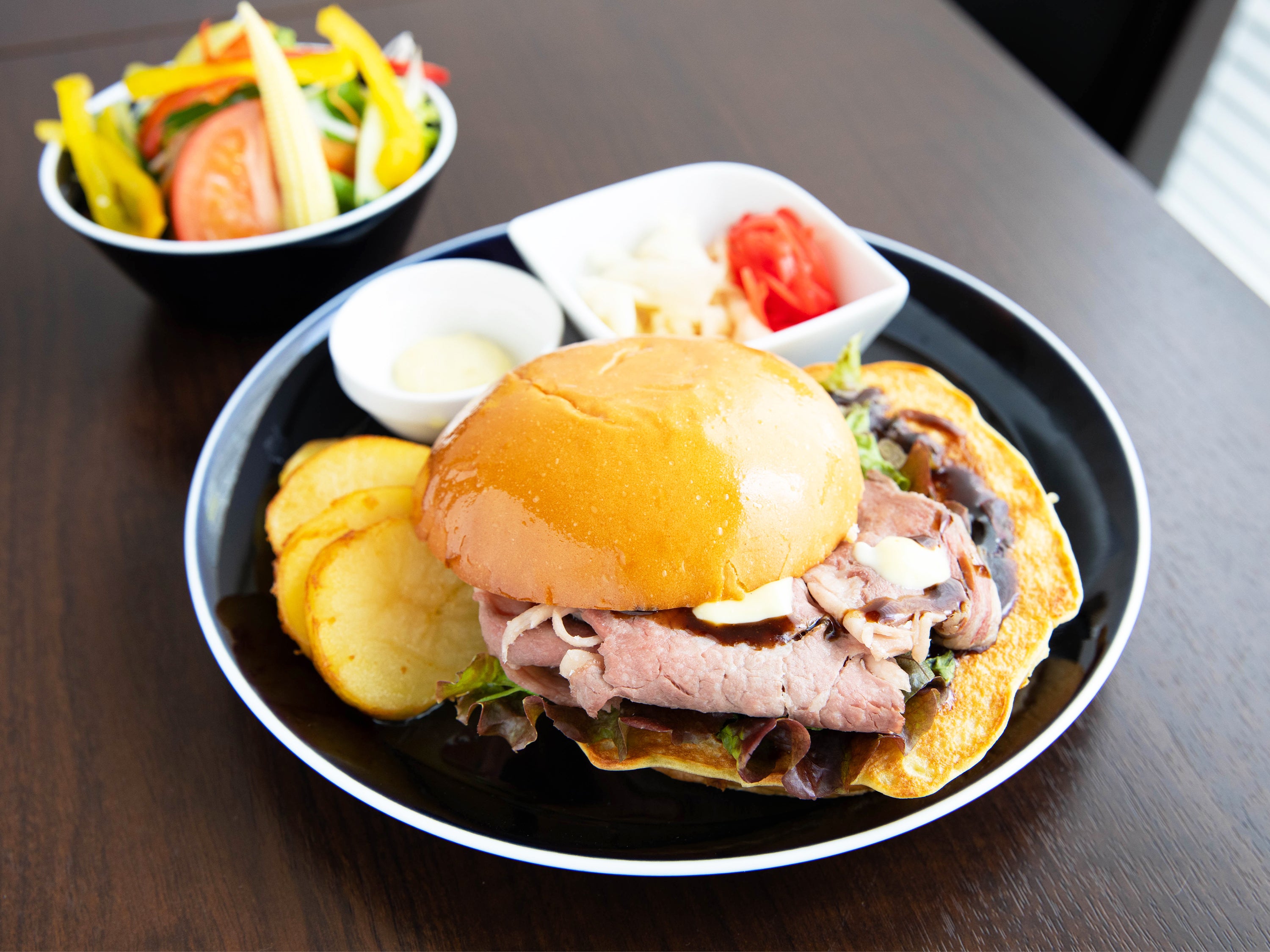 おこのみやきローストビーフのバーガーセット〈ドリンク付き〉 1,200円(税込)