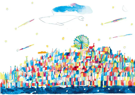 そのうちのお1人、なかむらなつきさんから届いたのがこの作品です。4/8(日)を皮切りに毎月開催していくマーケット『浜松サザンクロスほしの市』をイメージして描き下ろしてくださいました。