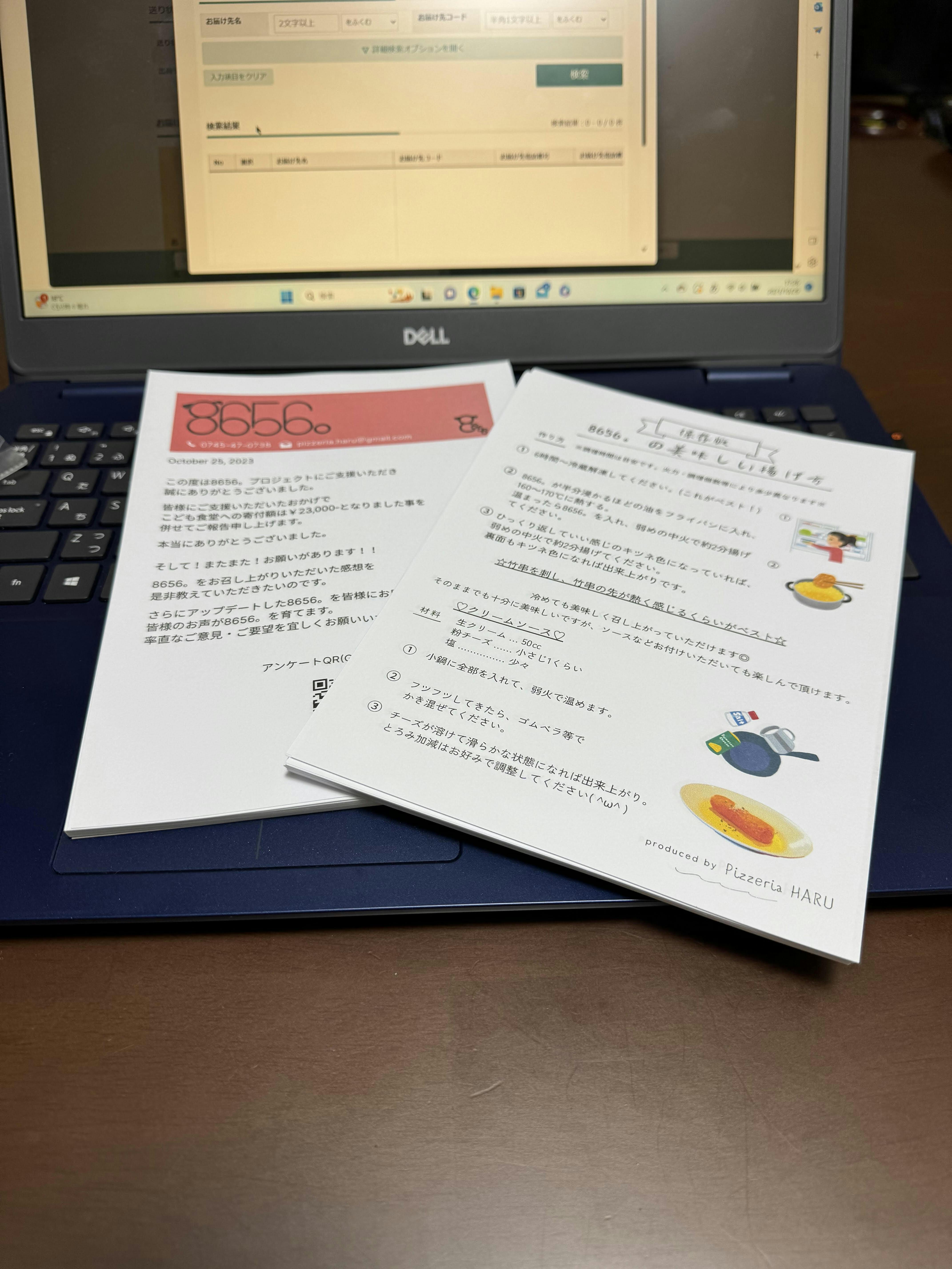 Pizzeria HARUでは私の妻が個人的にできる範囲で近隣のこども食堂のサポートしてきました。「8656。」がデビューできたら、その売り上げの一部をこども食堂のサポートに充てたいと二人で考えておりましたが、コロナ禍で中々プロジェクトをスタートできず、ようやく今回のプロジェクトでチャレンジできます。