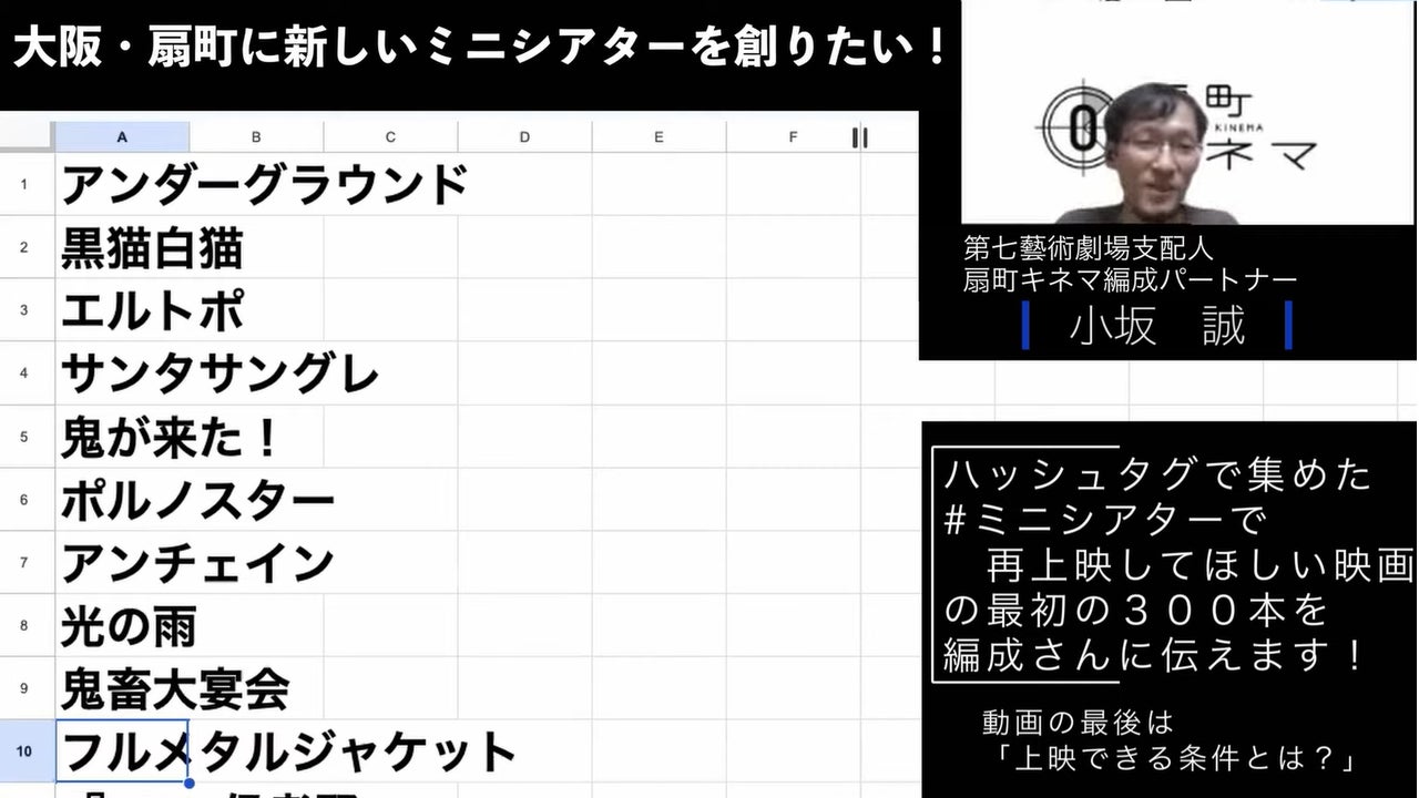 そこで今回は扇町キネマの編成協力をしてくださっているナナゲイの小坂さんに作品名をお伝えし、【扇町キネマ】で上映できるかどうか聞いてみました!