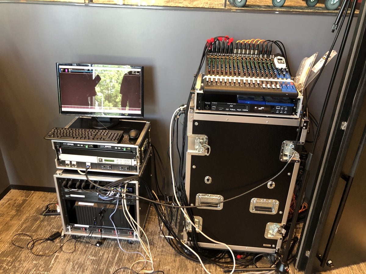 ・音響機材と上映データを保管するサーバーの様子