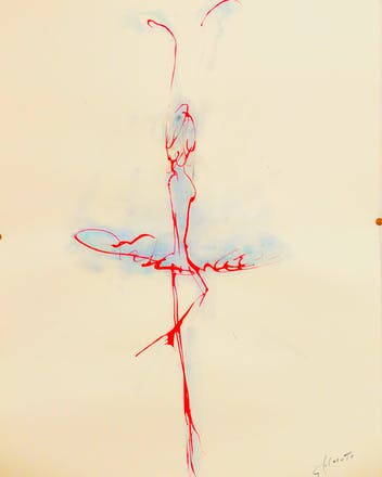 それは、スワンレイクのイメージ、ダイナミックなリズムを持ち一つの絵画に見えるでしょう。光のスタジオ空間にも溶け込むんです。ドローイングは1m〜20cmのサイズで、たくさんあります。