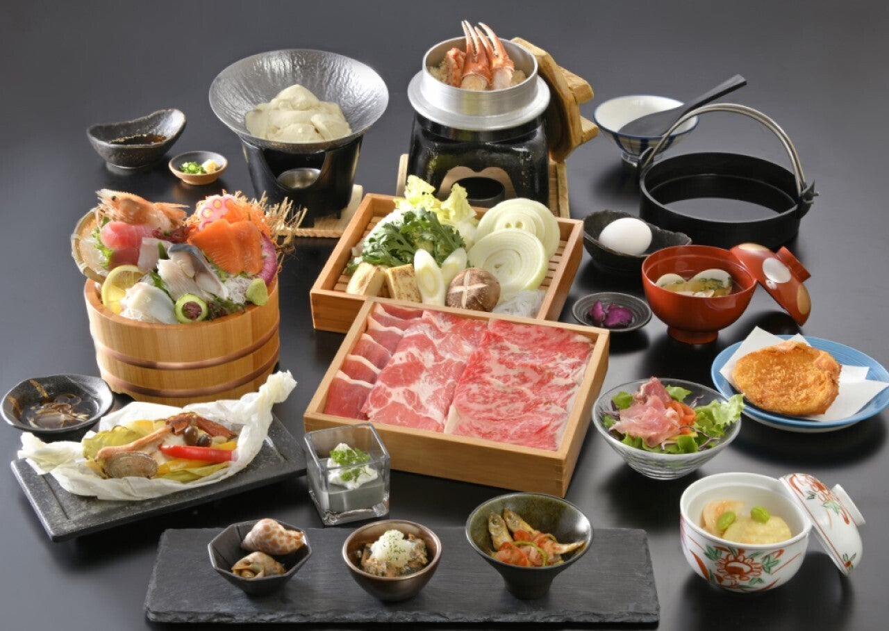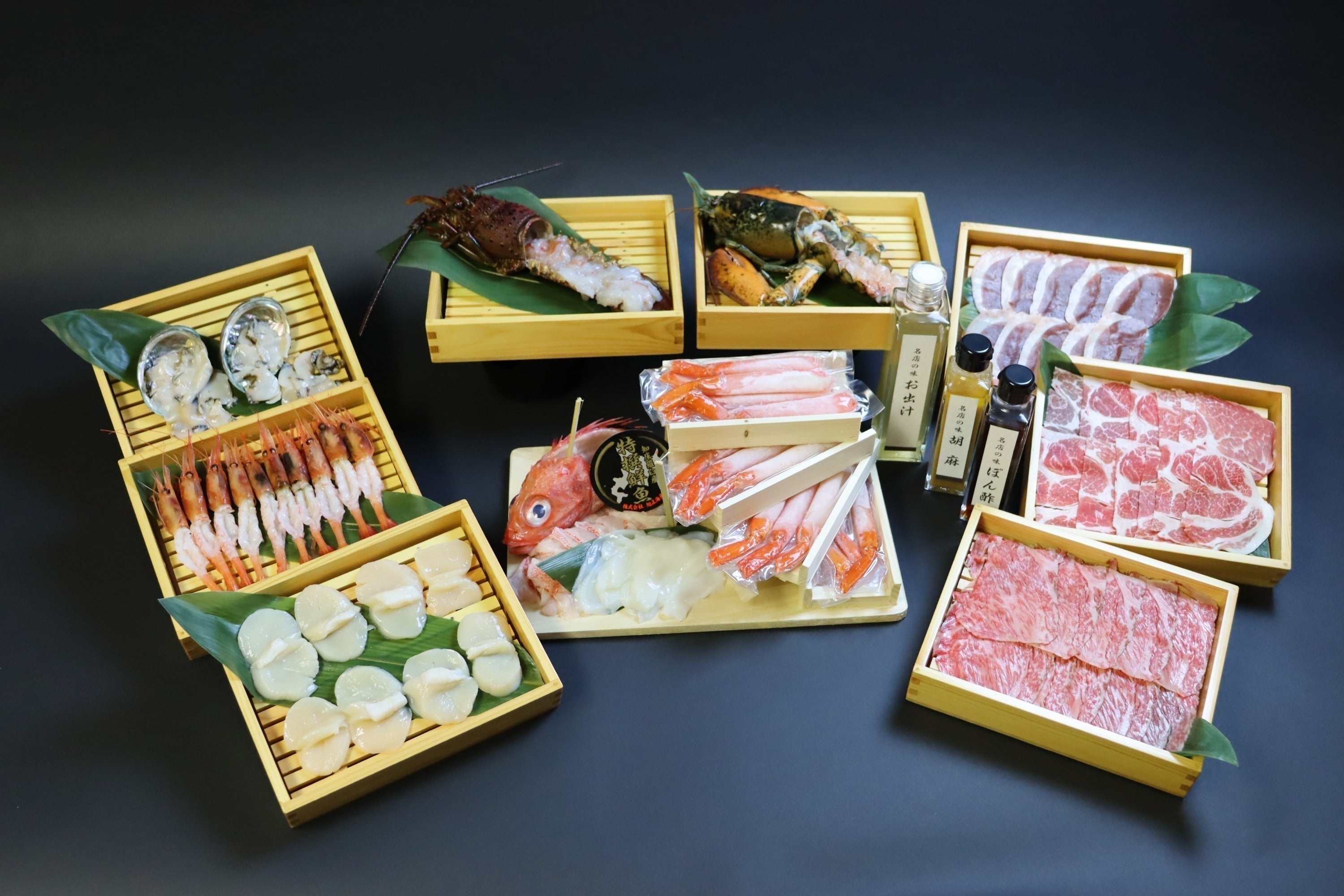 ・キンキ・ずわい蟹脚・生たこ・道産黒毛和牛サーロイン・上富良野地養豚ロース