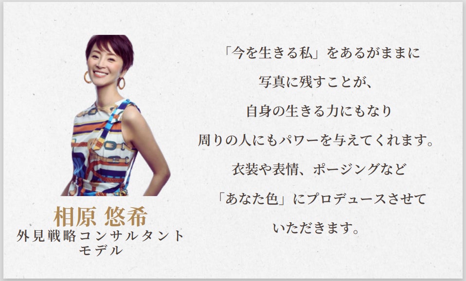 ご自身の想いと共に、ファッション、メイクアドバイス、ポージングに至るサポートにより