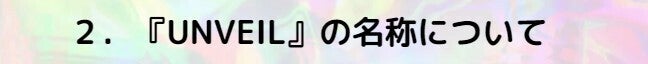 『UNVEIL』とは、「ベールを脱ぐ=ありのまま」という意味があります。新たな自分の体をベールで覆い隠すことなく、前向きに受けれてほしい。という願いを込めています。