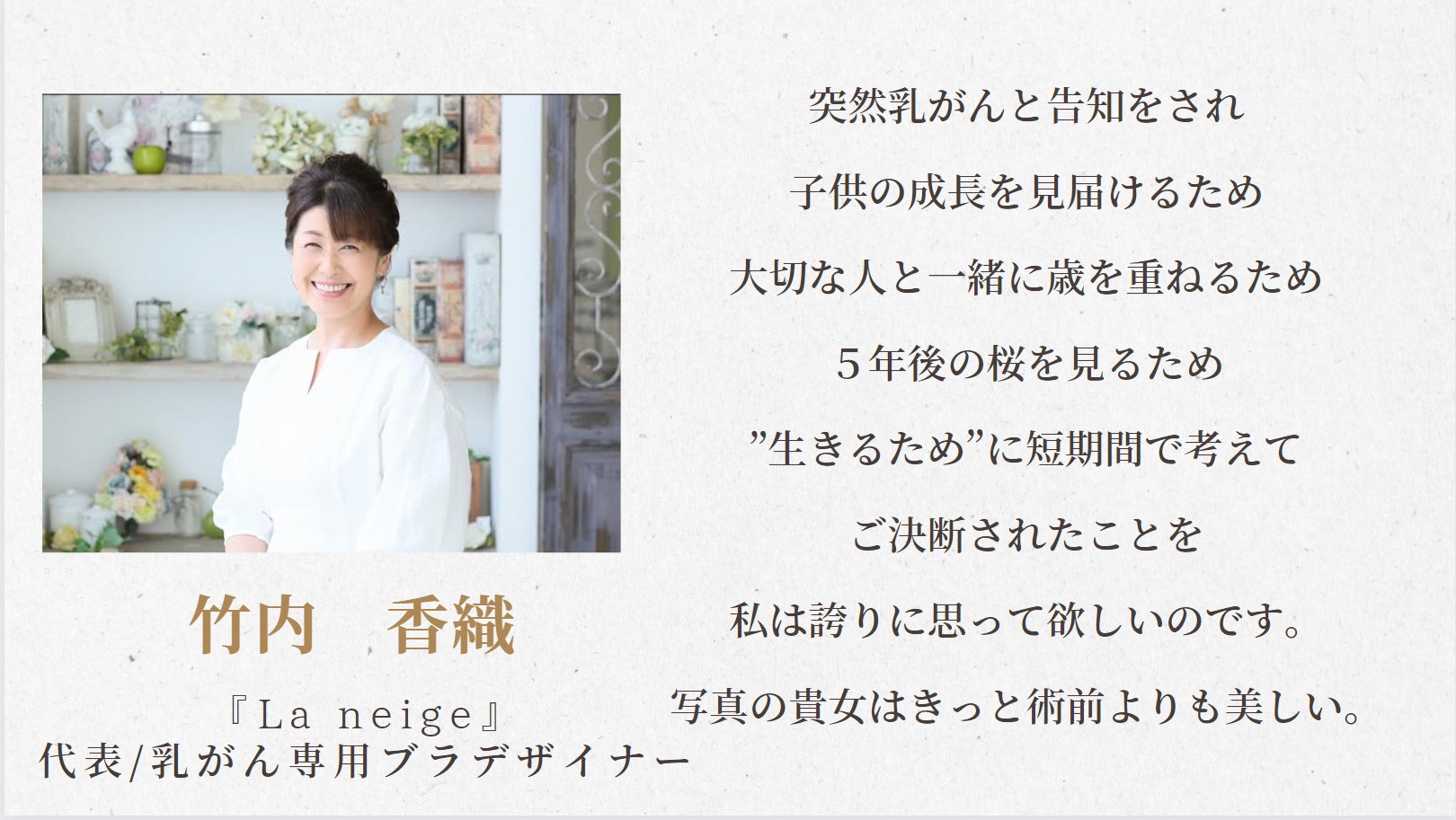 病いによる「心理的なストレス」+「胸摘出・抗がん剤・放射線治療等の外見の変化」が起きても、私は、病に挑んでいる女性たちの姿は、とても「強く、逞しく、美しい!」と、同じ乳がんの方々と触れ合ってきた中で、率直に感じました。