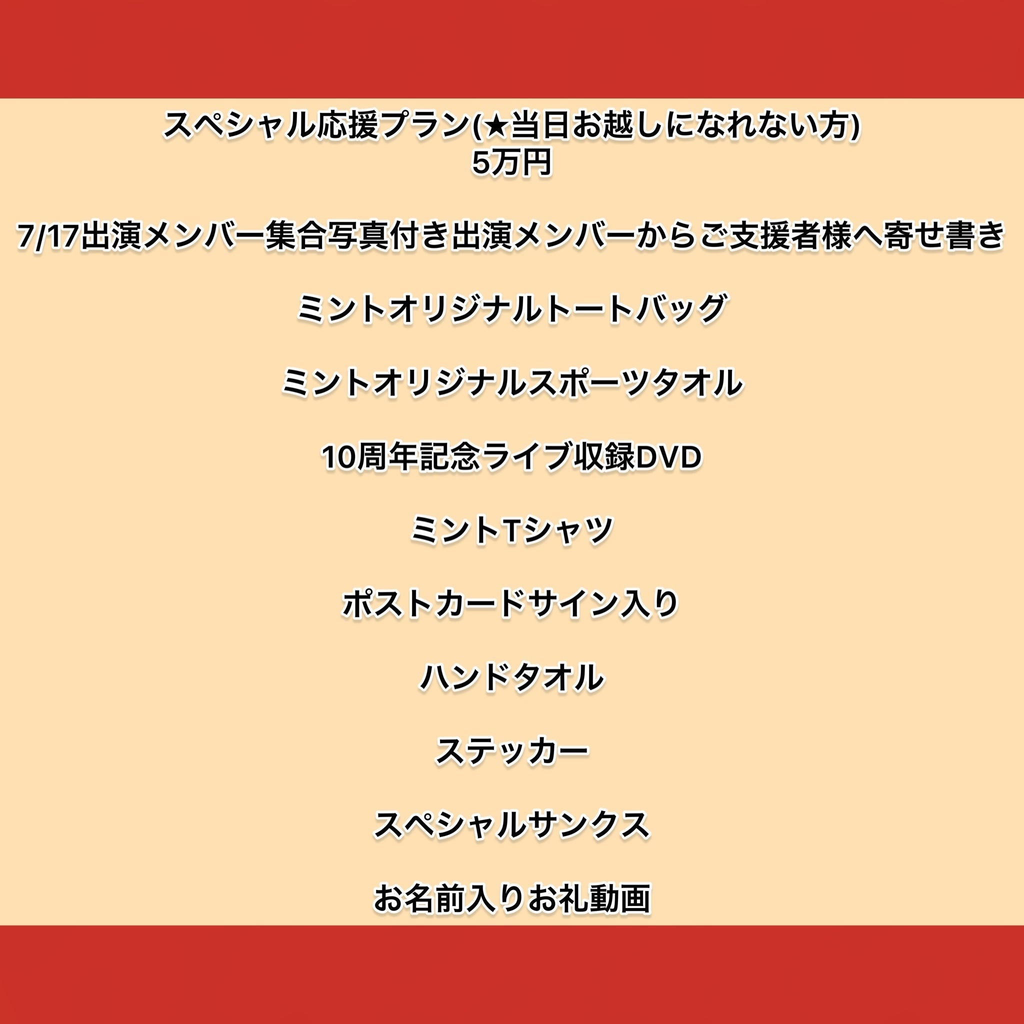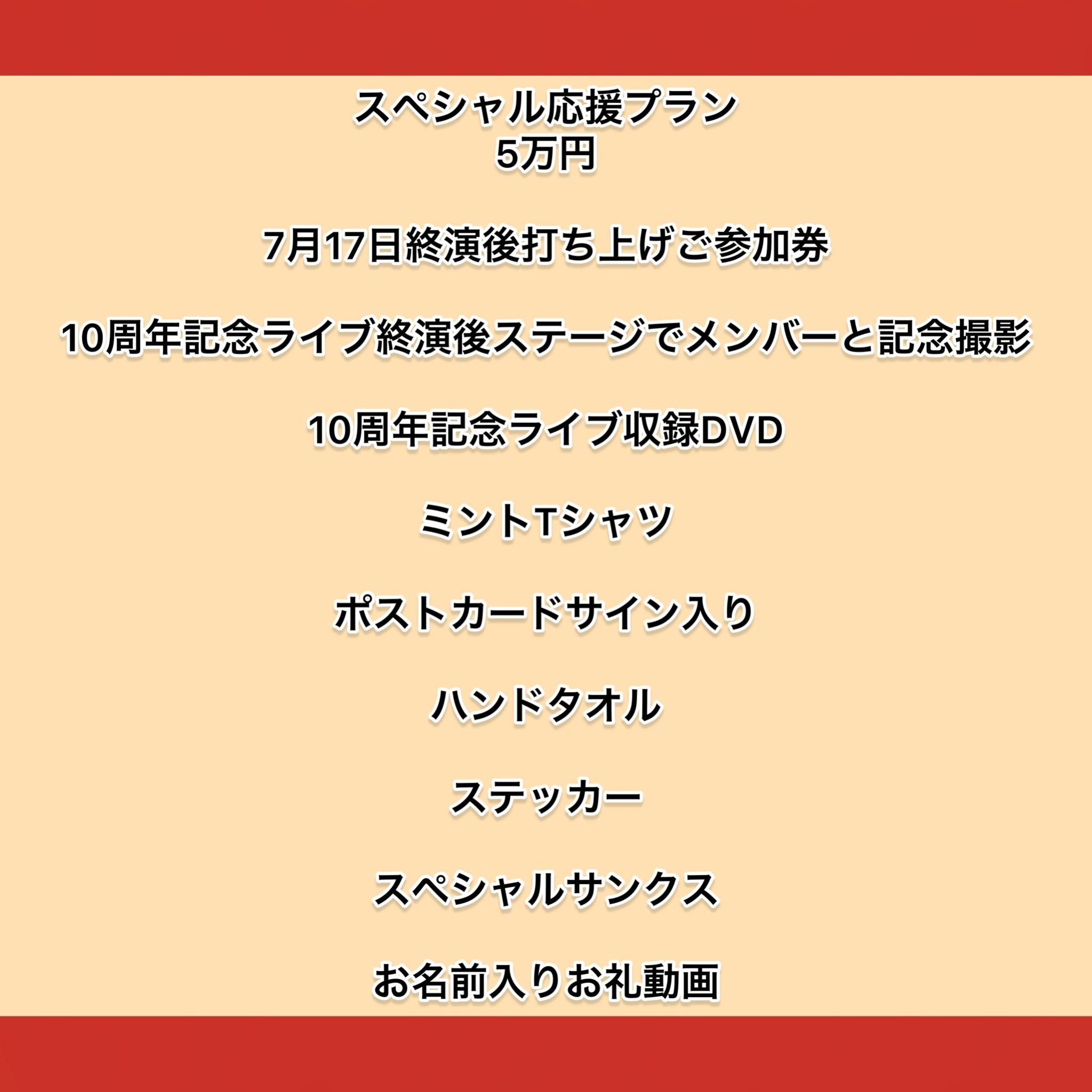 ・打ち上げ参加券・当日ステージにてメンバーと記念撮影の代わりとして、