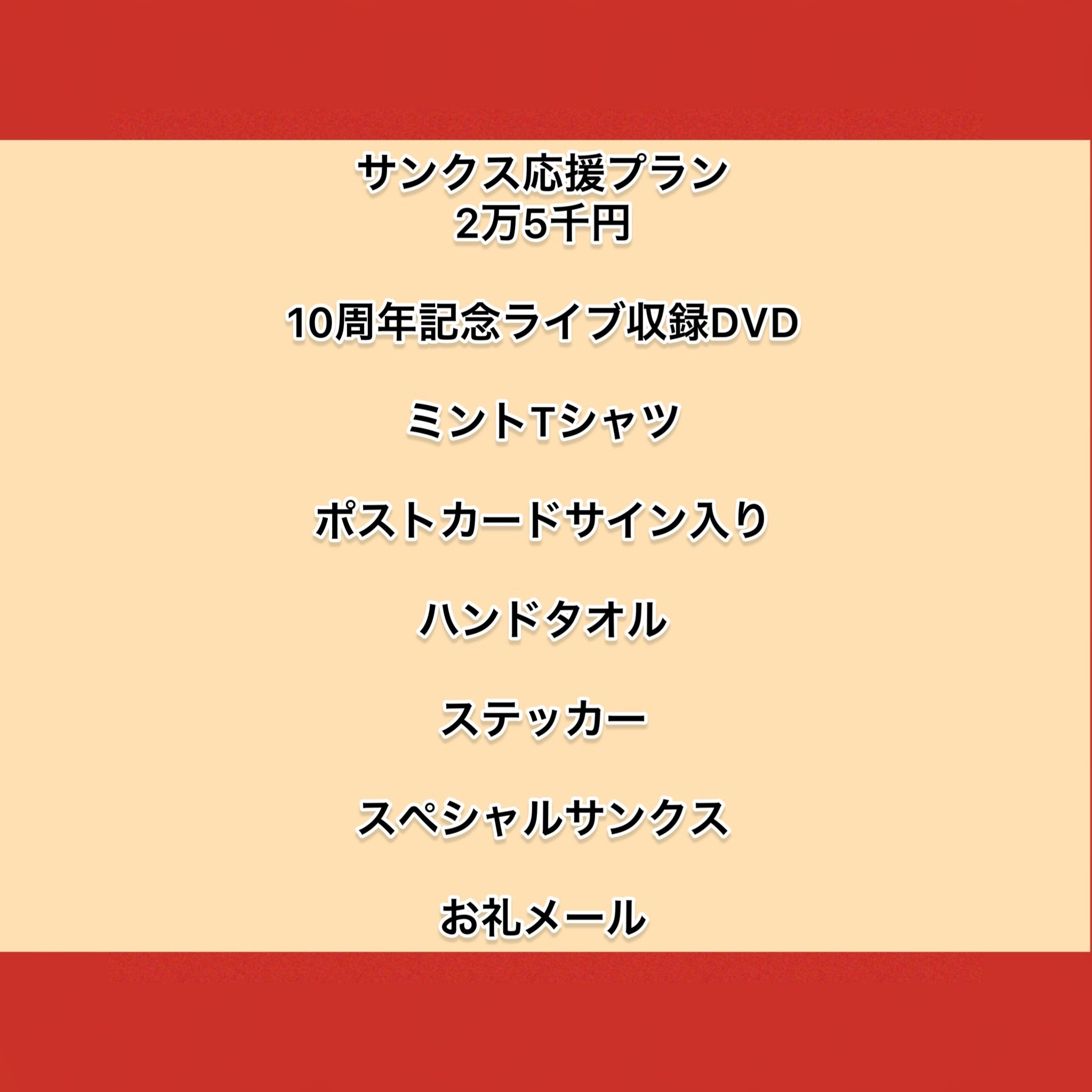 ・ポストカードメンバーサイン入り→10周年記念のジャケット写真にサインさせていただきます。サインに関しましては、7月17日出演のボーカルのサイン付になります(万が一、ボーカル以外の出演者メンバーのサインをご希望される場合は、備考欄にどのメンバーのサインが欲しいか名前をご記載くださいませ。)