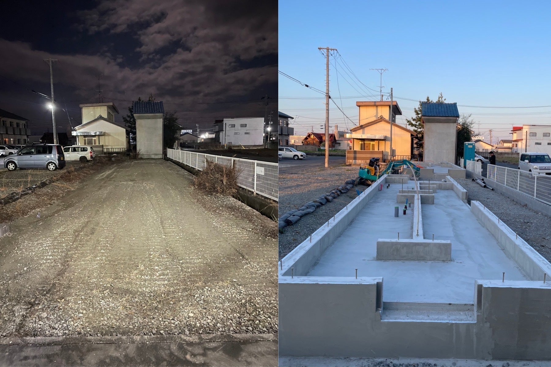 (左:まだ更地だった頃 / 右:建設中の現在)