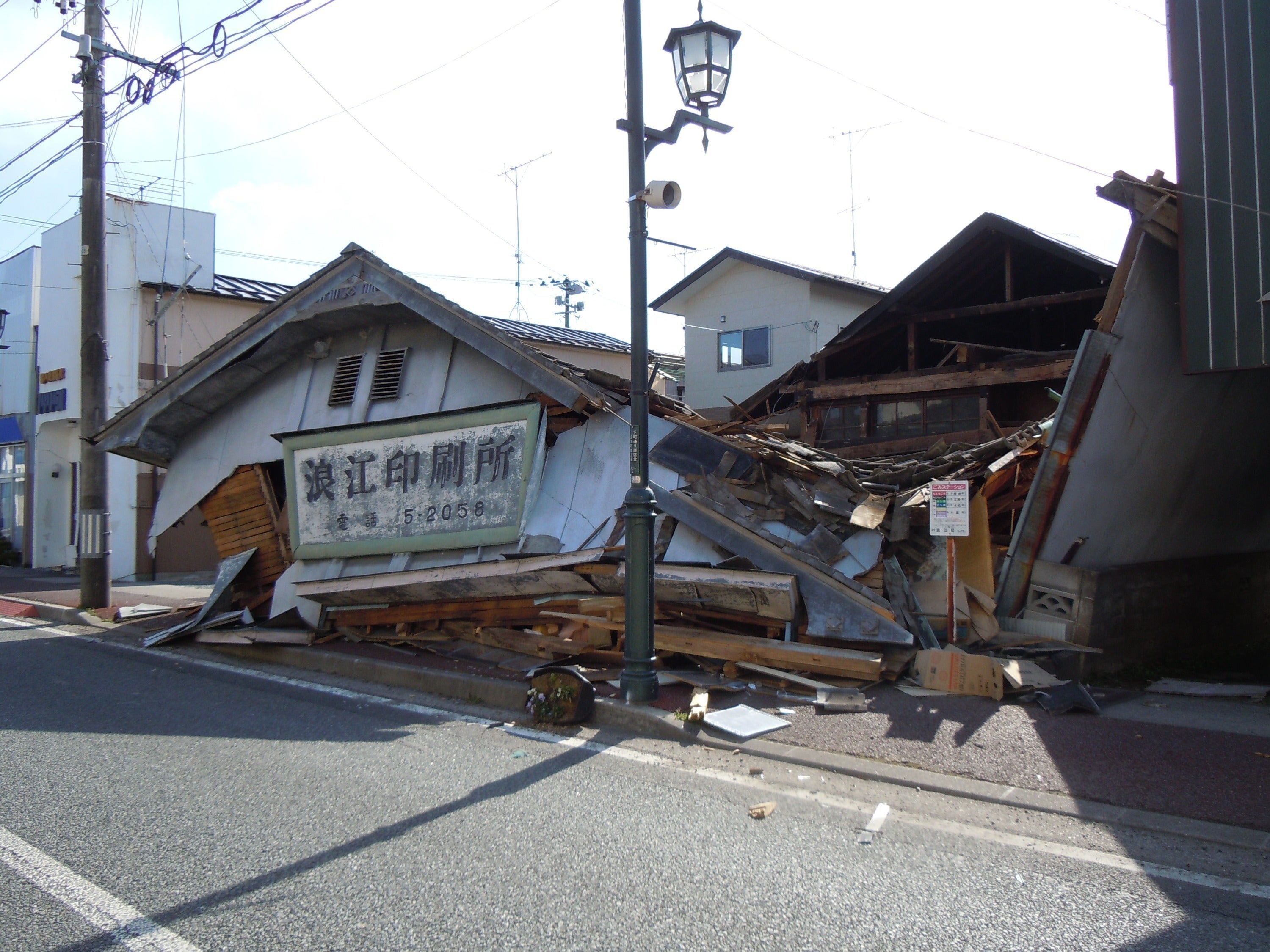(震災後、地震で崩壊した建屋 ※出展元:福島県浪江町)