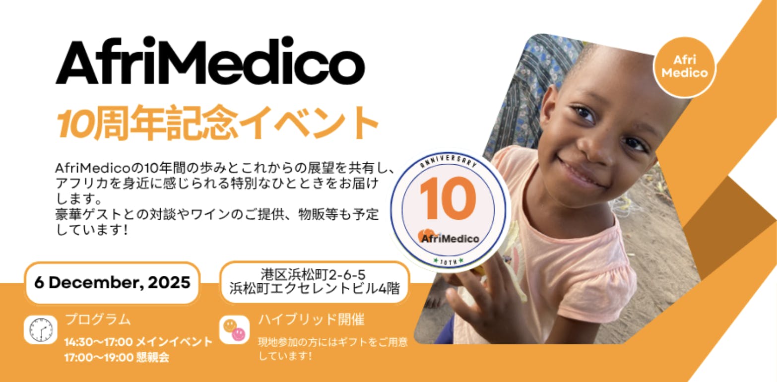 そして今年、AfriMedicoは設立10周年を迎えました!この10年の歩みを、支えてくださった皆さまと一緒に振り返り、未来を語り合う特別なイベントを開催します。