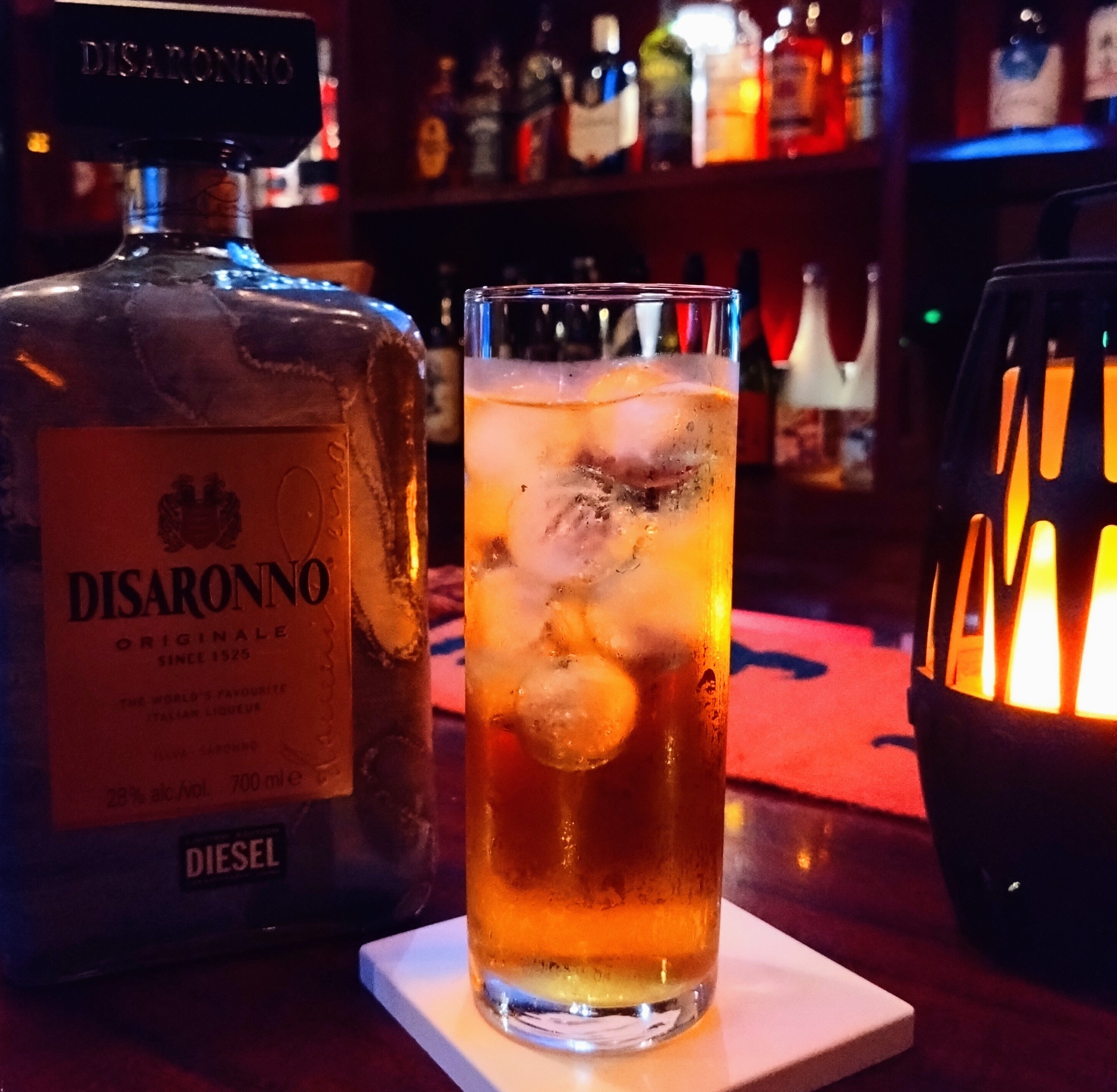 【アマレットジンジャー】です!甘いカクテルが好きな方!あんずが好きな方におすすめです!あんずの香りをほのかに感じたい時はリキュールを調整しますのでご要望ください♪