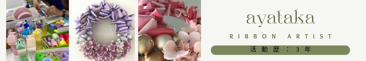 アクセサリーやファッション、インテリアなど、リボンには無限の可能性を感じてリボンアーティストとして活動を始めました。本来廃棄されるコスメの空き瓶をリボンで可愛くデコレーションするなどサステナブルな活動も含め、各地でワークショップを開催しています。