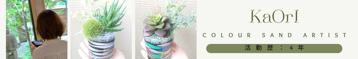 モノ作りが大好き!!この気持ちから、カラーサンドアーティストとして活動中。またカラーサンドアート以外にもいろんな分野のディプロマを取得し、ワークショップ開催に向けて日々活動中。