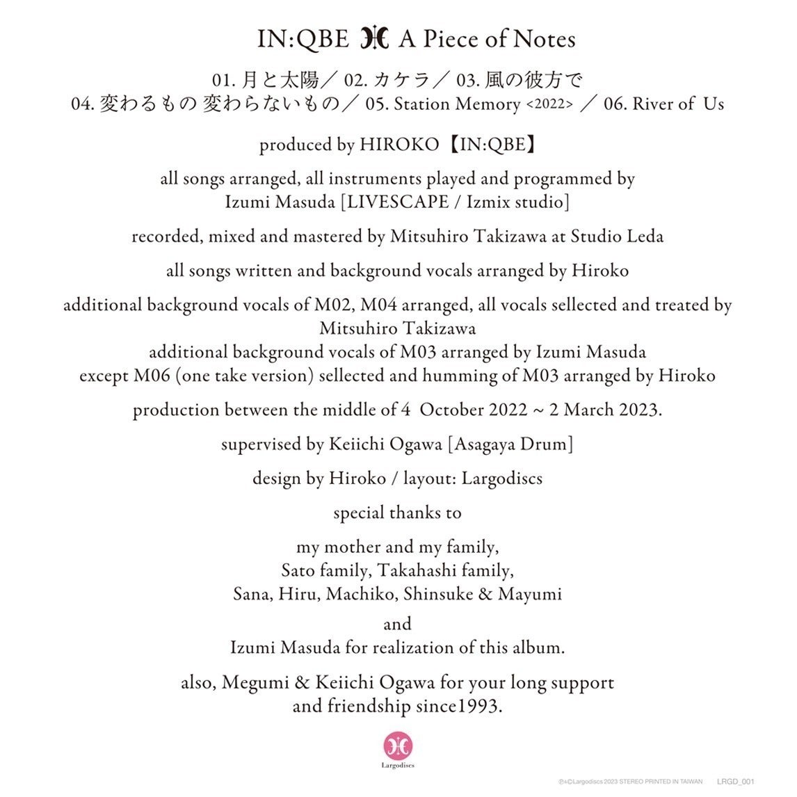 CD『A Piece of Notes』情報