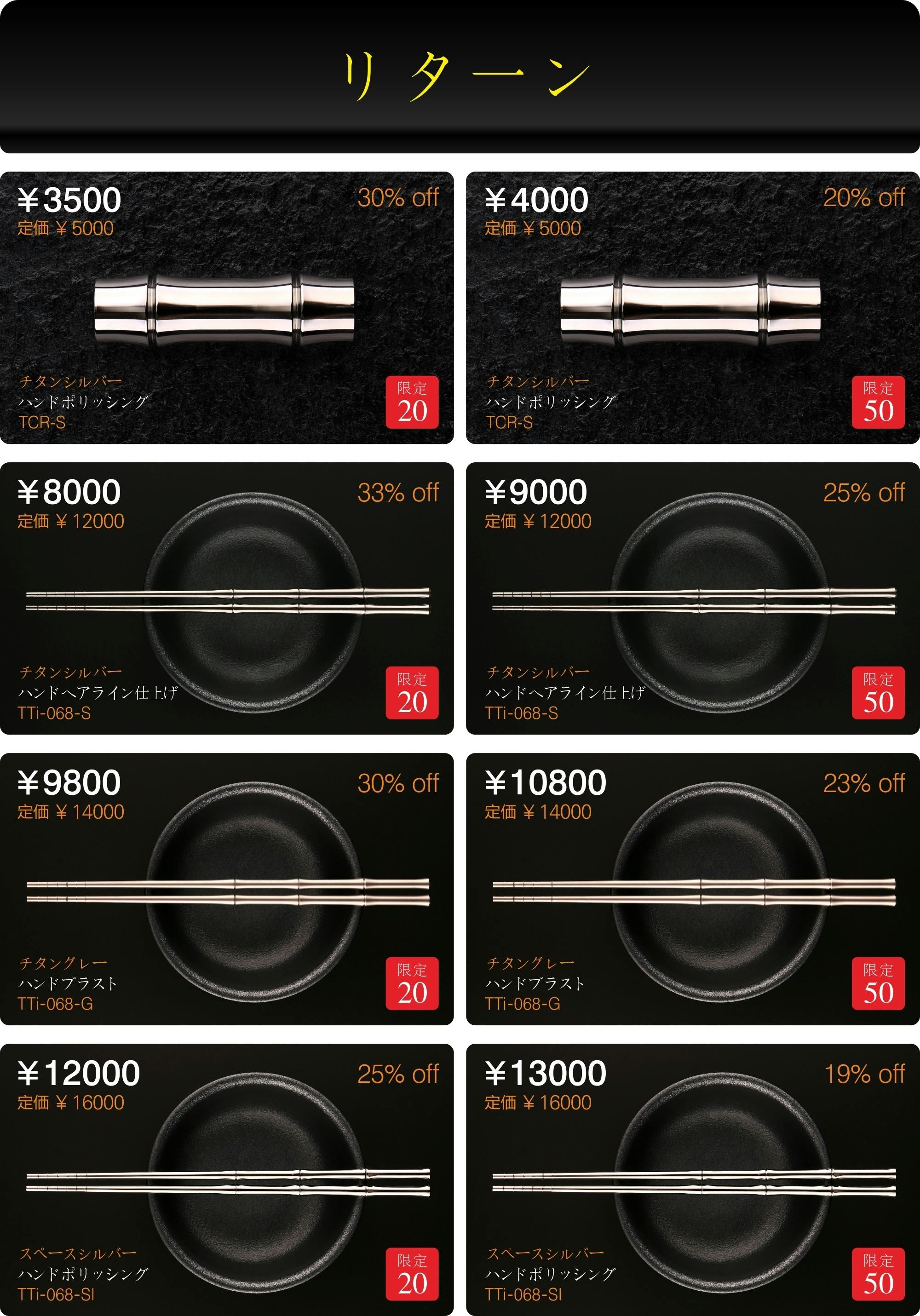 ◎弊社はTIMAZE TTi-068竹型チタン箸及びチタン竹型箸置きの正規代理会社で、CAMPFIREだけでプロジェクトを展開しており、一部国内に類似品が出回っている場合がございます。弊社では類似品に関してのお問い合わせには対応出来ませんのでご了承ください。