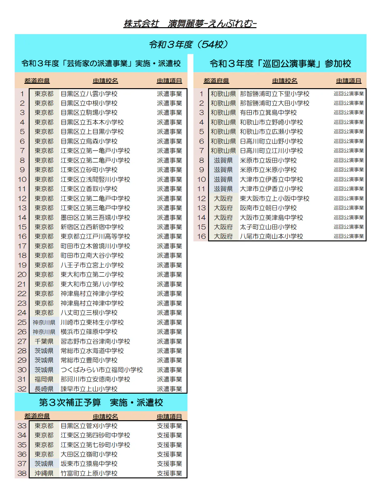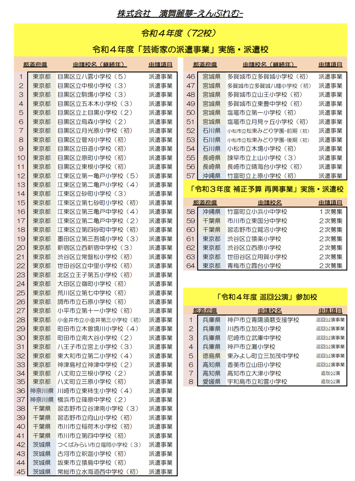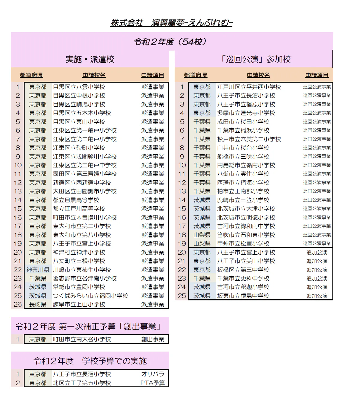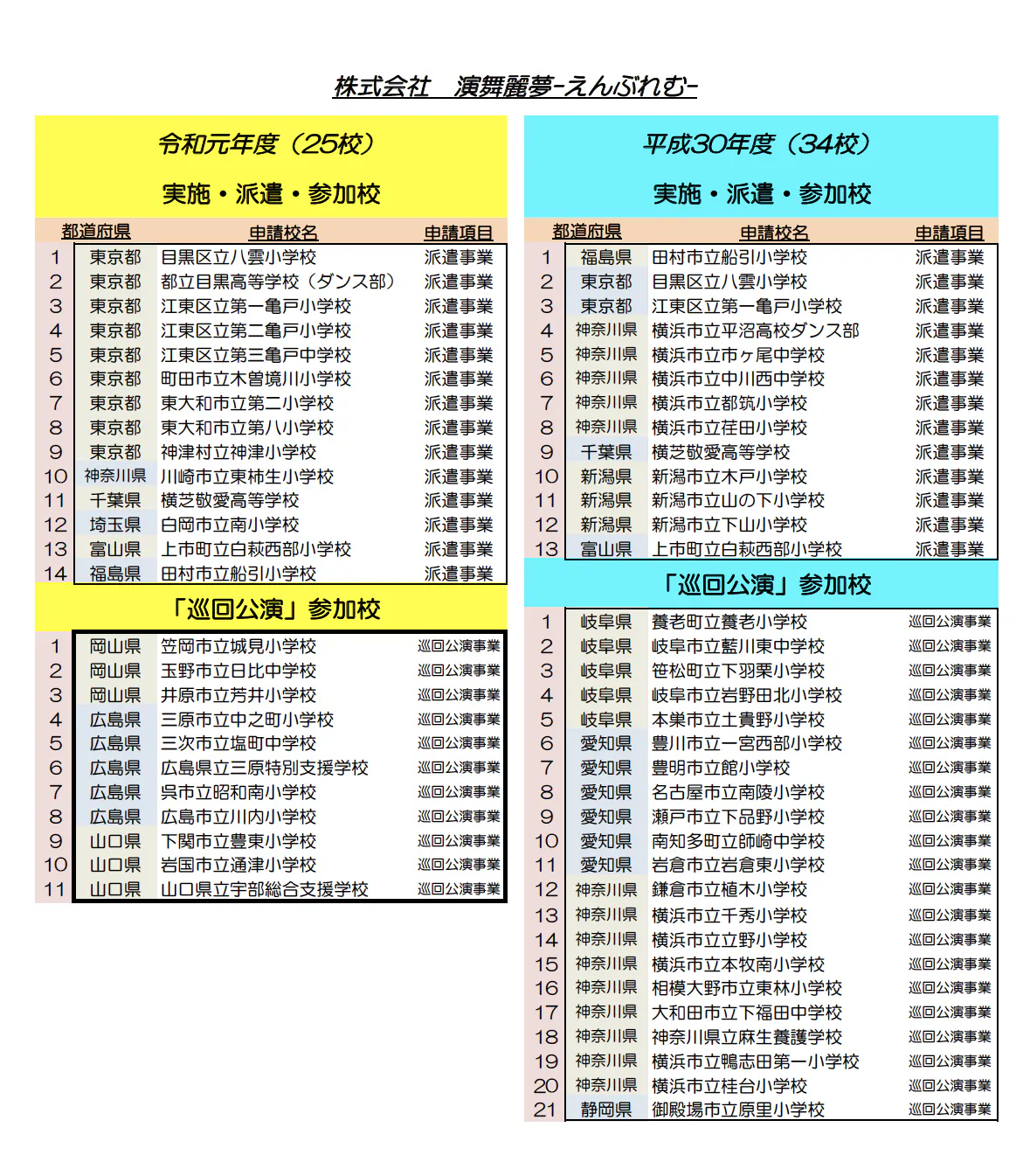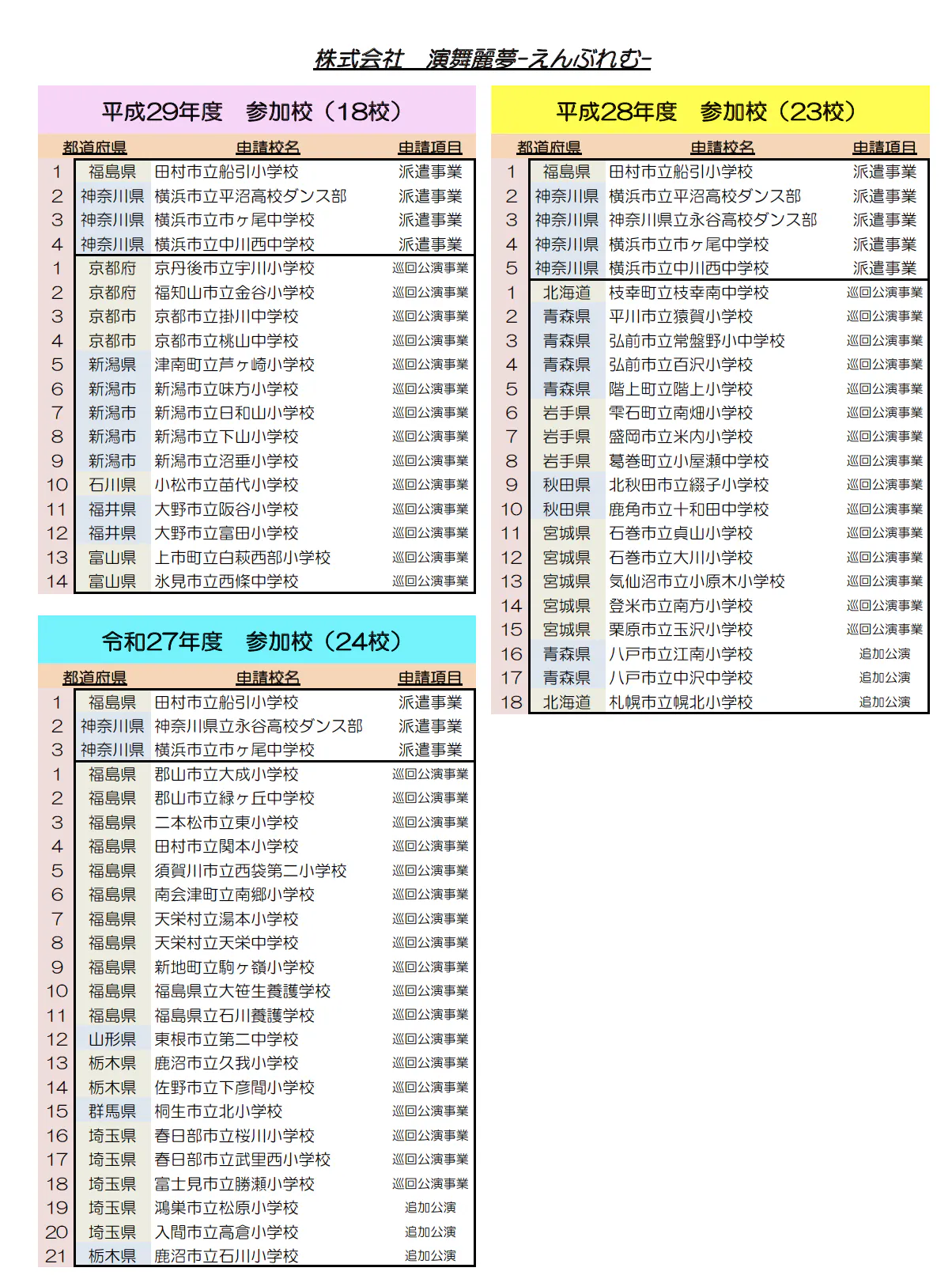 (株)演舞麗夢−えんぶれむ−としては初年度4校からスタートしました。