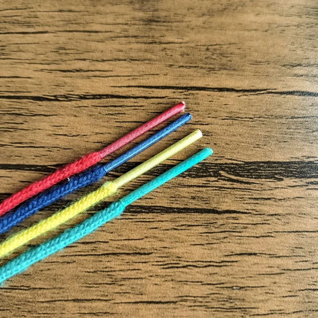 穴に何度通してもほつれたりしないセル加工されたつづりひもを利用しています。