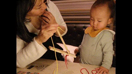 実際に2歳のお子様に体験してもらったところ、紐とおしに夢中になっている姿が見られました!