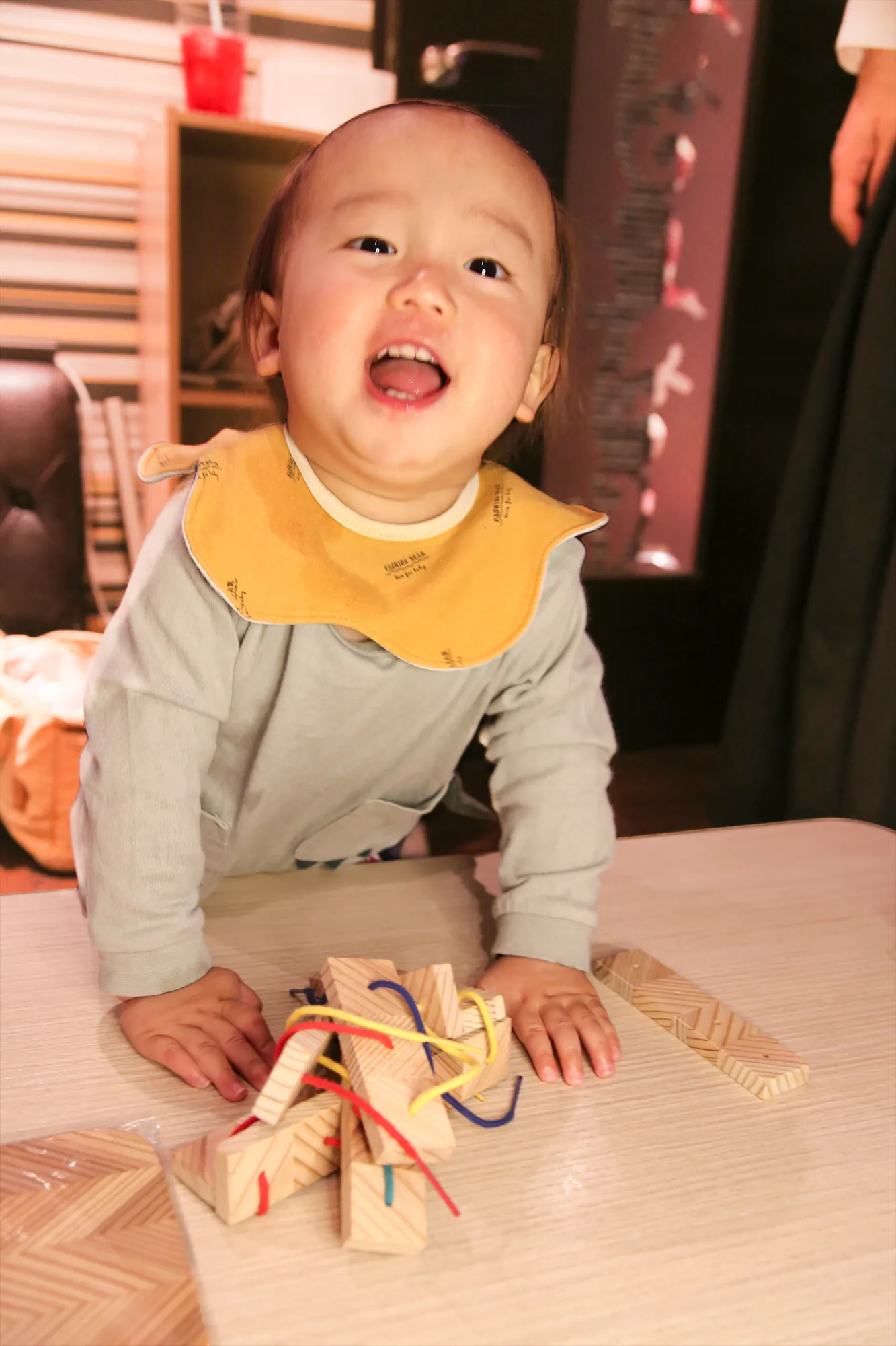 製品化に向けて試作品を何組かの親子さんに試していただいた際に、私一人で考えていた時には思いもしなかった遊び方がいくつもありました。この、ひもしゅるり、もそうです。