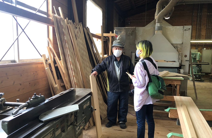 やばねブロックの製作はこのクラウドファンディングのプロジェクトが終了してからの予定。普段はオンラインでの打ち合わせでなかなか直接お会いできないので、製品の打ち合わせを少々。特にやばねブロックの穴は1セットで56か所も開ける必要があります。それをひとつひとつ、手作業で開けてはバリをとるということをやっていただきます。自然物を加工した製品ですので、どうしても個体差が出てしまいますし、大変な作業です。