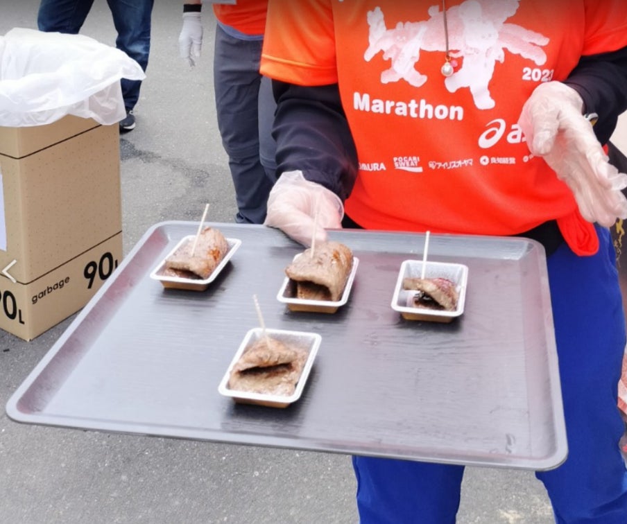 豪華すぎるエイド、左は名物はっと汁、右はなんと仙台牛!