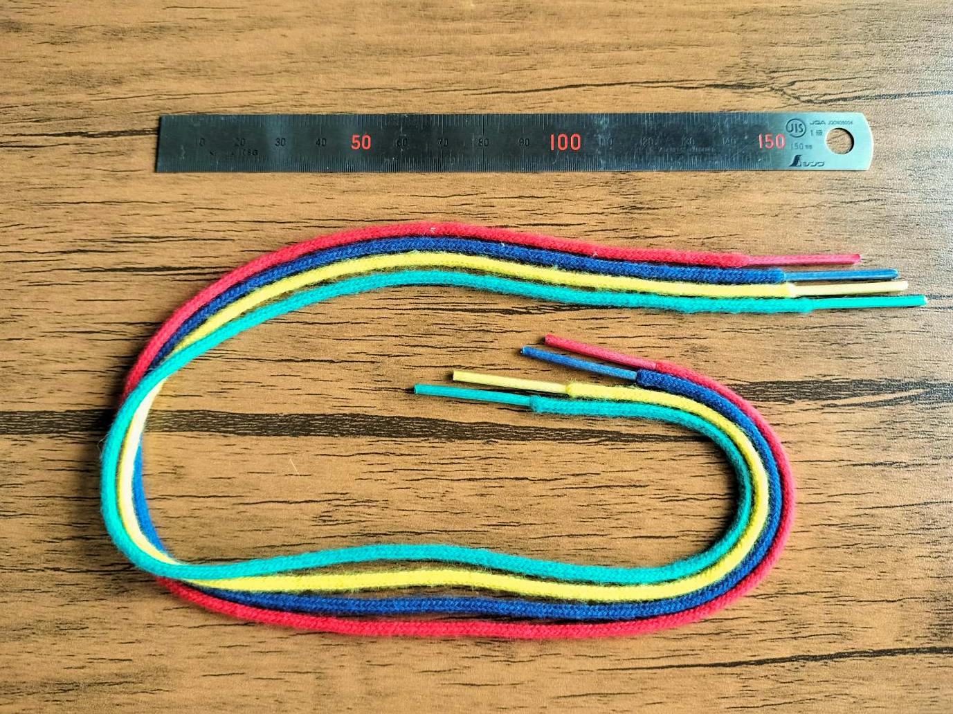 穴に何度通してもほつれたりしないセル加工されたつづりひもを利用しています。