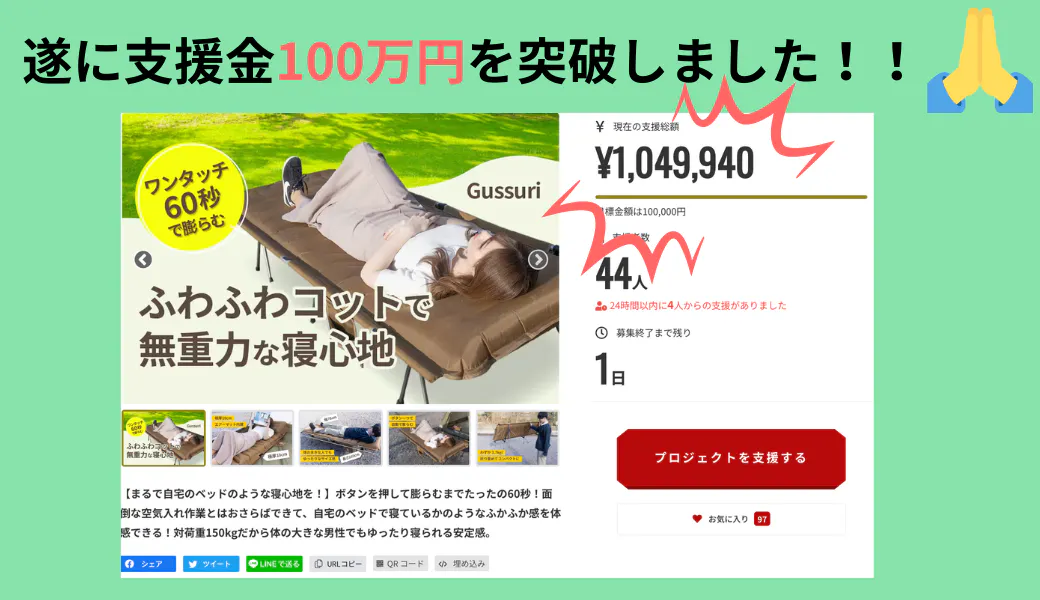 遂に、支援金が100万円を突破しました!!!