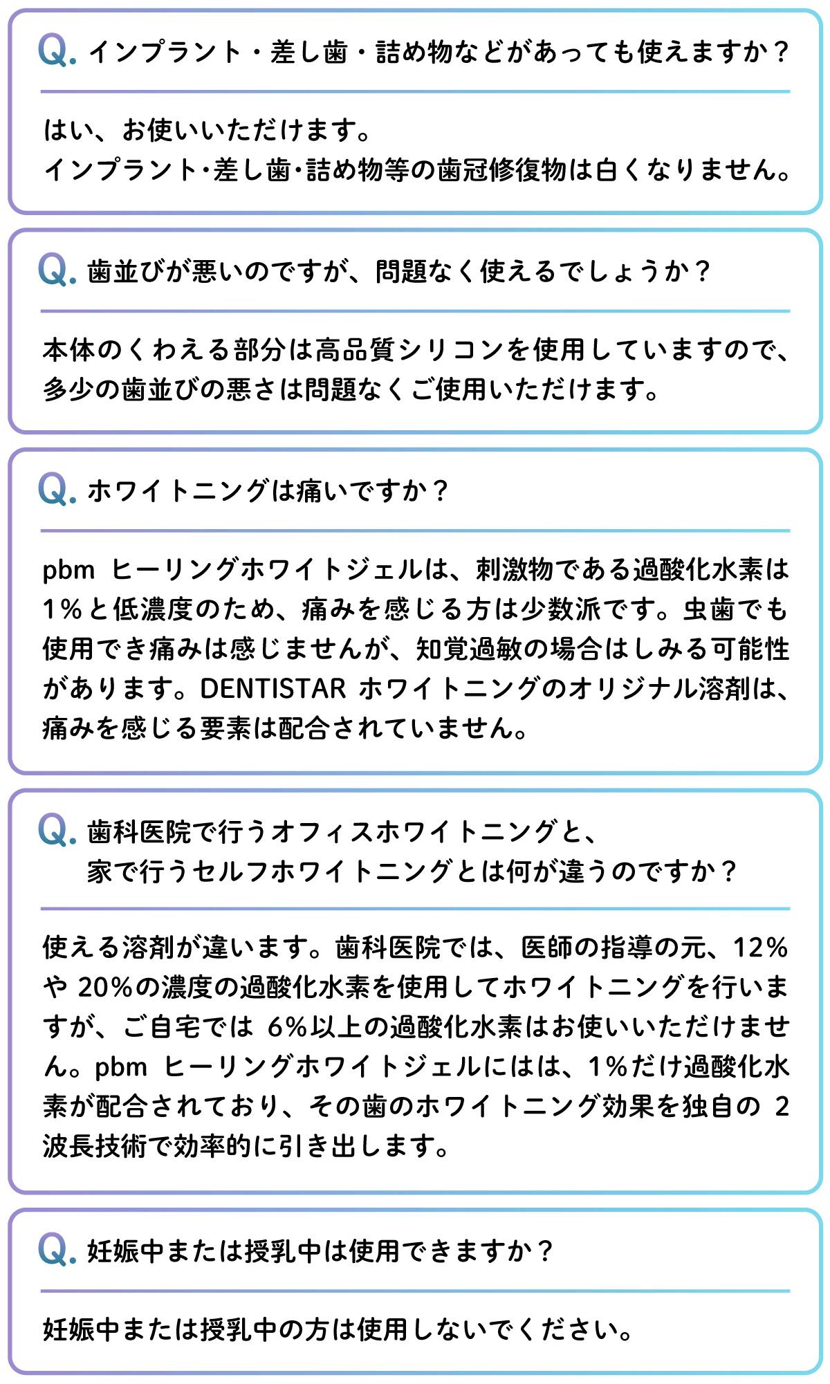 「pbmヒーリングホワイト」は、ご自宅で手軽に行っていただける歯のセルフホワイトニングのための機器とジェルのセットです。