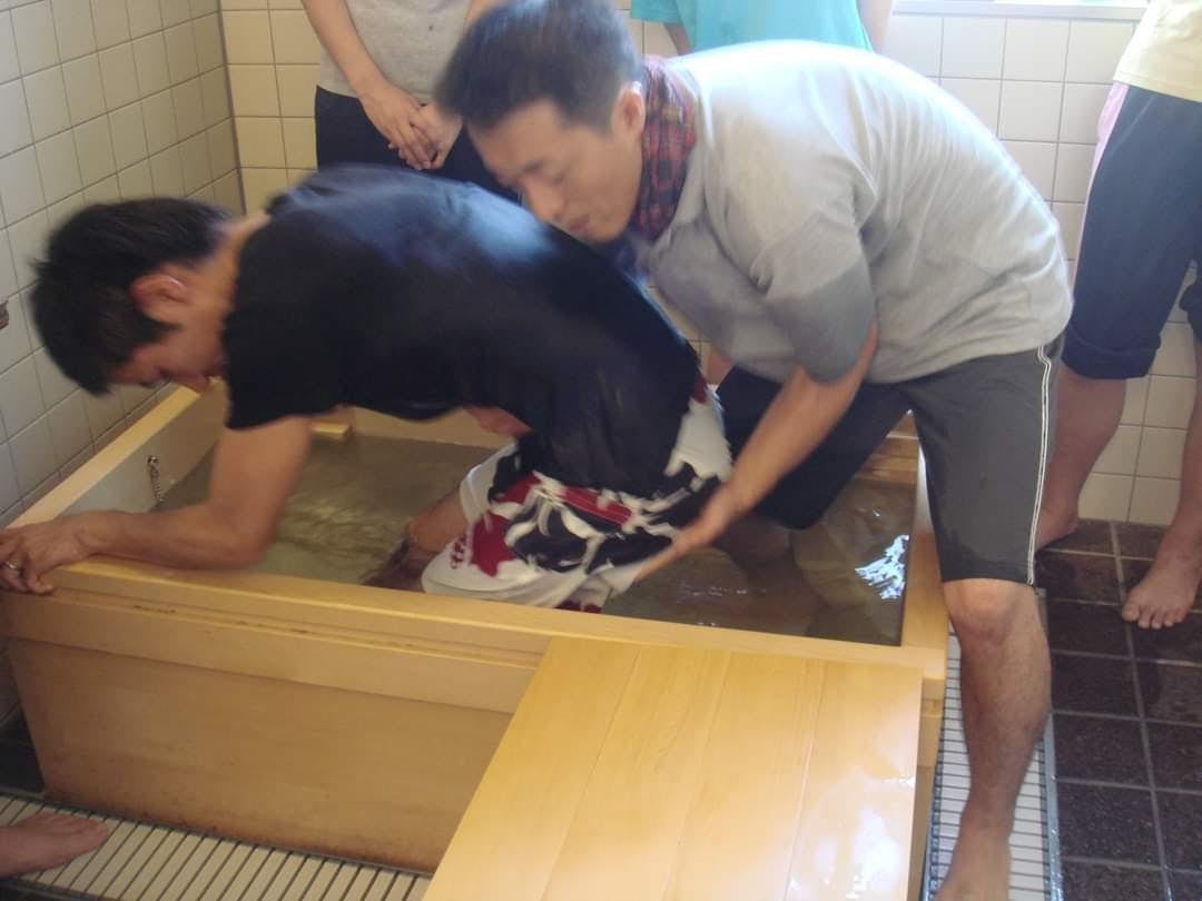 私たちは日課の中での生活動作を大切にした介護をおこないます。そのために、古民家を増築して、広々とした浴室スペースを確保しました。そして車椅子の人や手足にマヒのある人でも入りやすい半埋め込み式浴槽(40cmのイスと浴槽縁がピタリと合う設計)を用意しました。陶器の浴槽、ひのきの浴槽など温泉にでも来たかのようにココロとカラダが動く「生活リハビリ」を実践していきます。