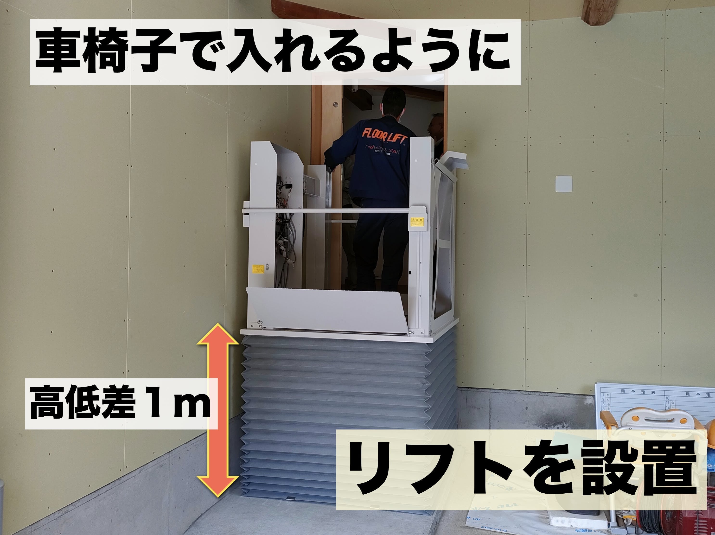 車いすの方でもしずちゃんハウスに通いやすい昇降リフトを設置しました。