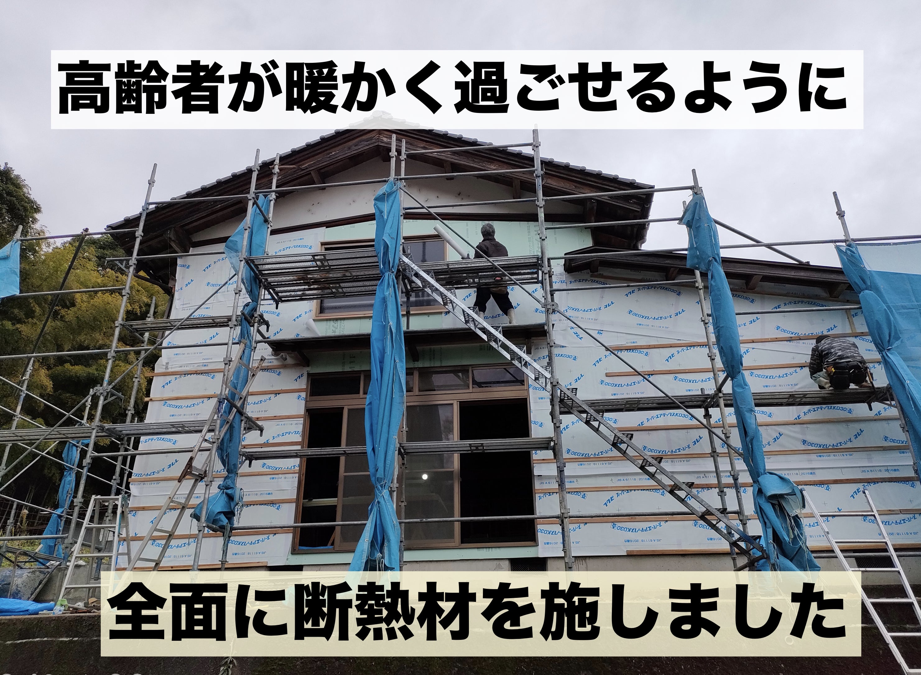 豪雪地帯、丹後の冬は寒い。暖かく過ごせるよう環境に断熱材を全面に施工しました