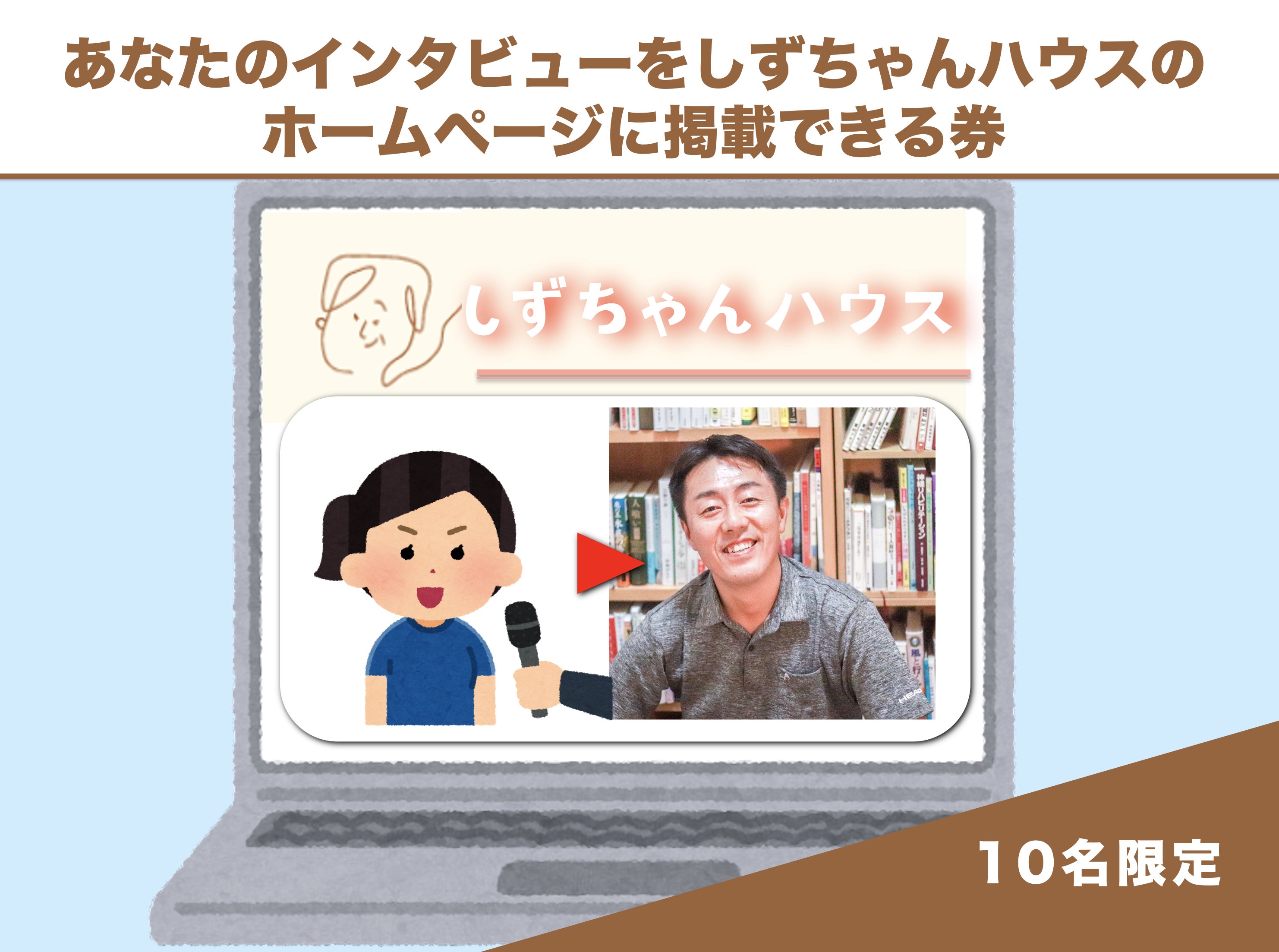 ●あなたの活動を松本健史がインタビューし、動画をしずちゃんハウスのホームページに掲載できる券(3万円)素敵なインタビューが撮れたら松本のYouTubeチャンネルにもアップするかも。