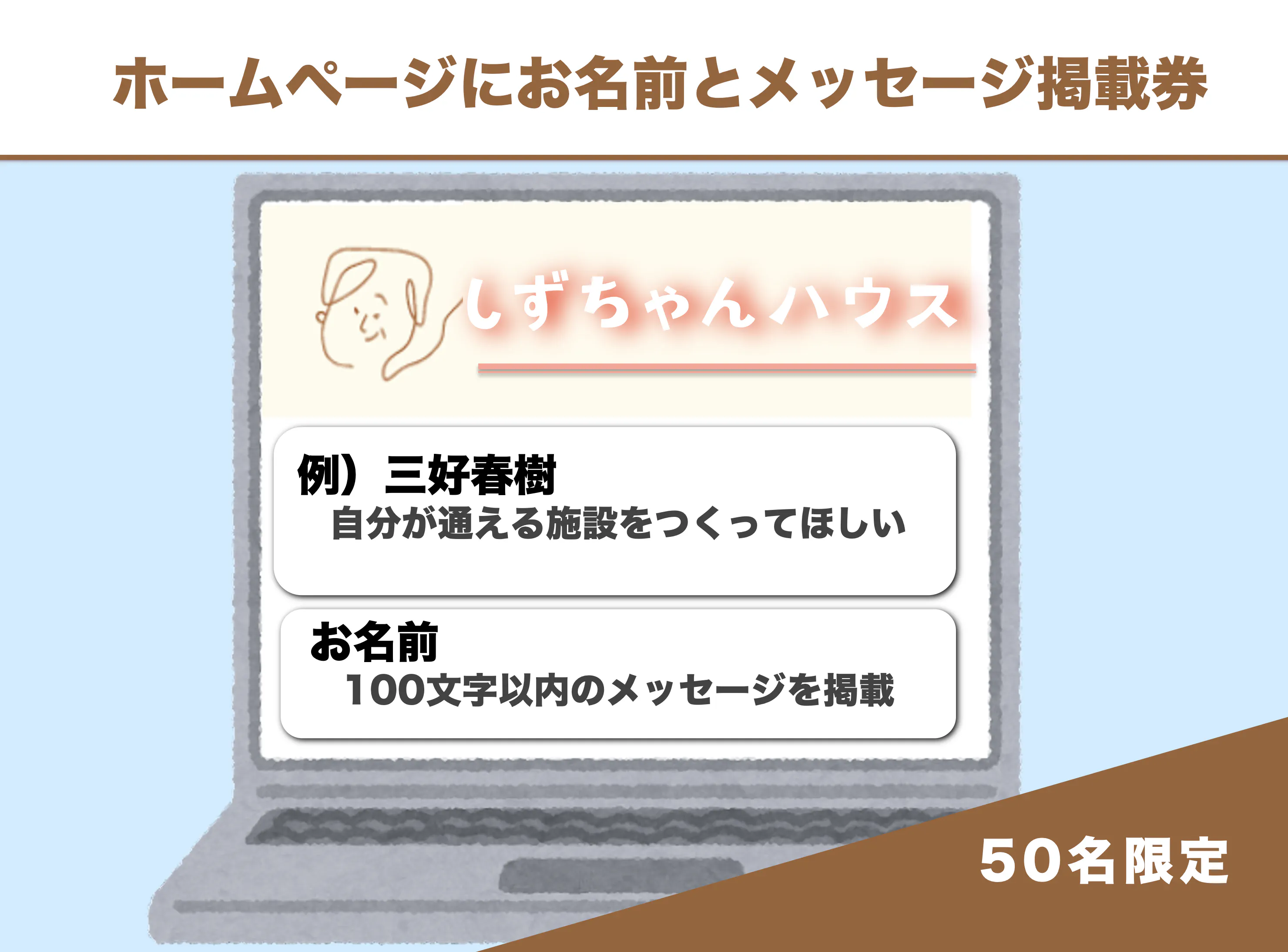 ●しずちゃんハウスホームページにお名前とメッセージが掲載できる券